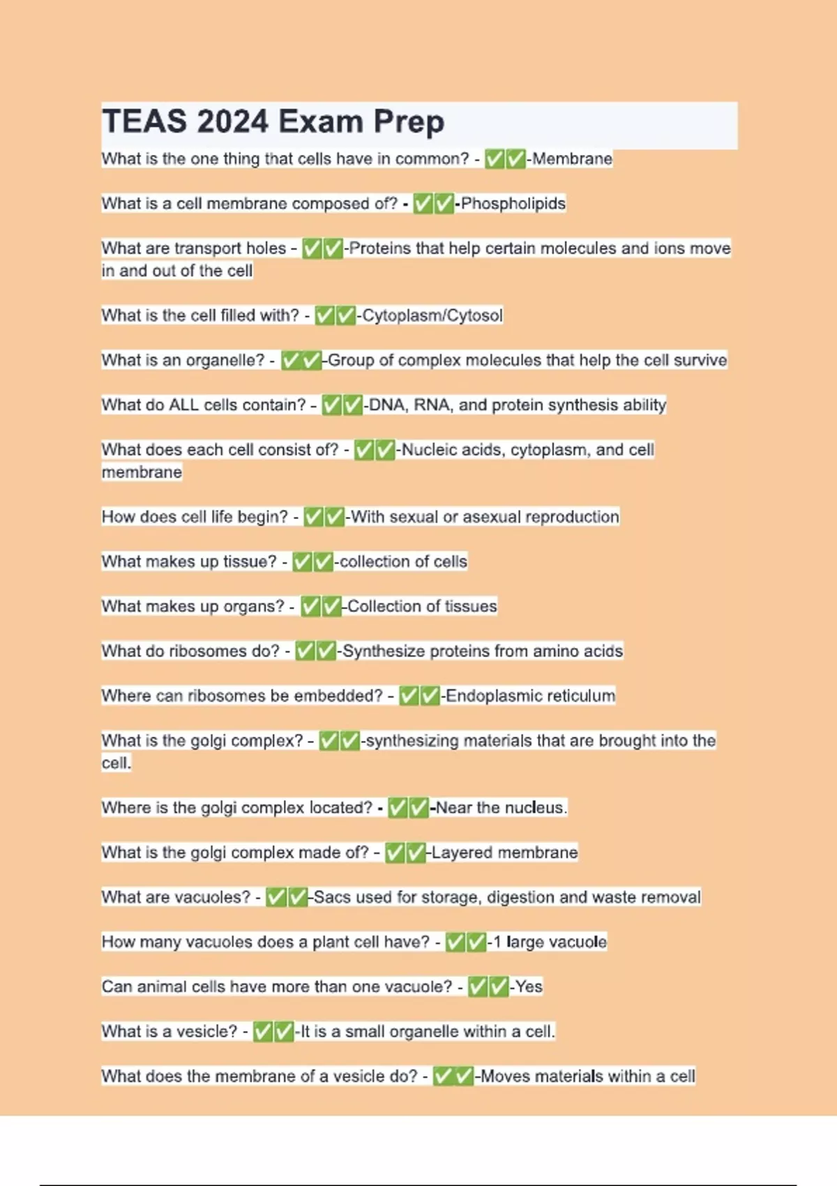 TEAS 2024 Exam Prep Questions & 100% Verified Correct Answers with complete solutions (Latest update