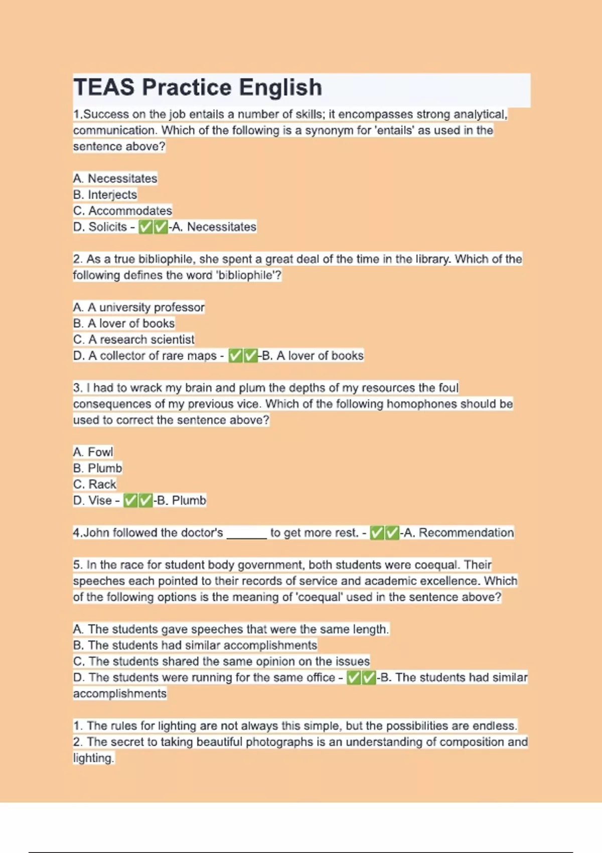 TEAS Practice English Questions & 100% Verified Correct Answers with complete solutions (Latest update