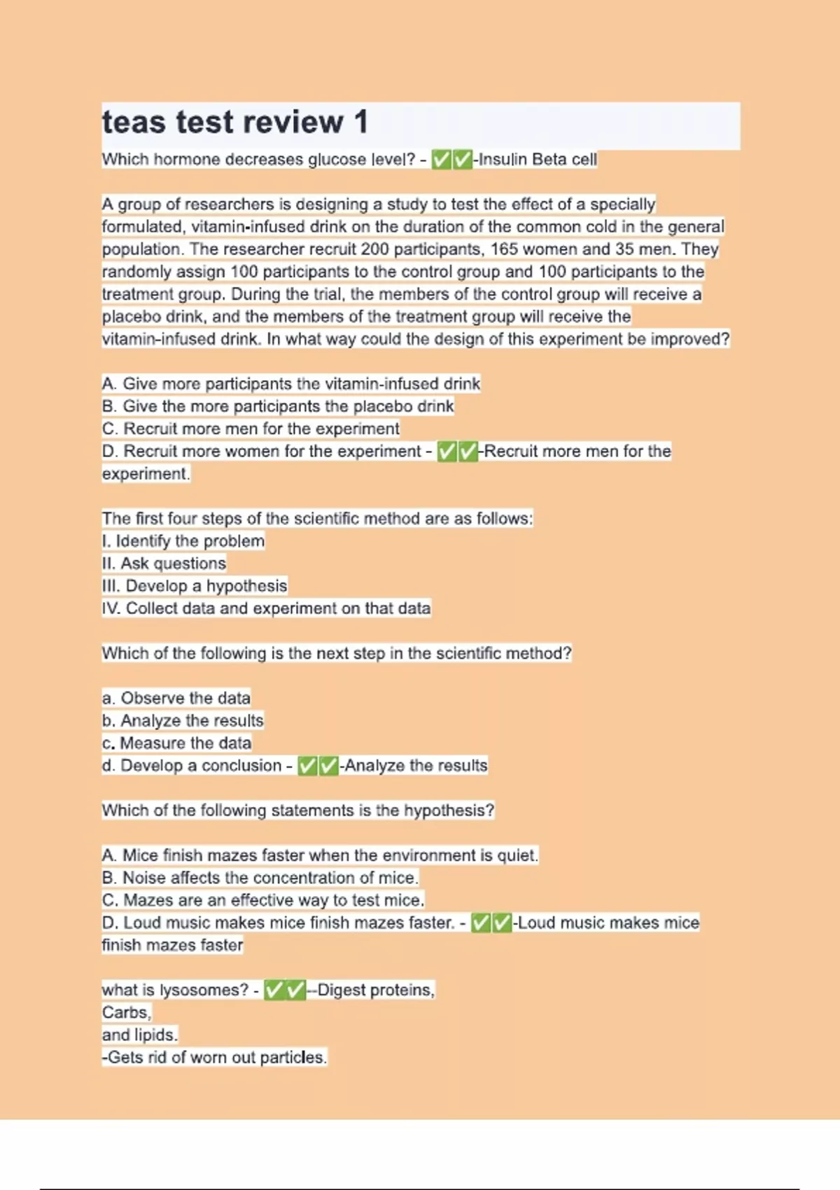 teas test review 1 Questions & 100% Verified Correct Answers with complete solutions (Latest update