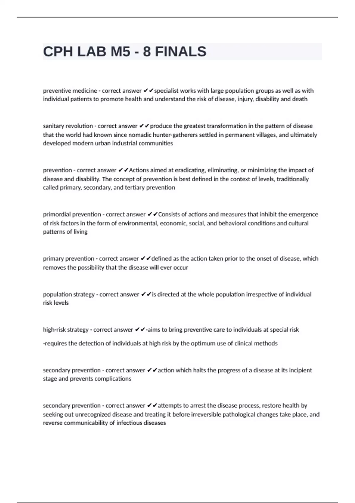primordial prevention - correct answer ✔✔Consists of actions and measures that inhibit the emergence