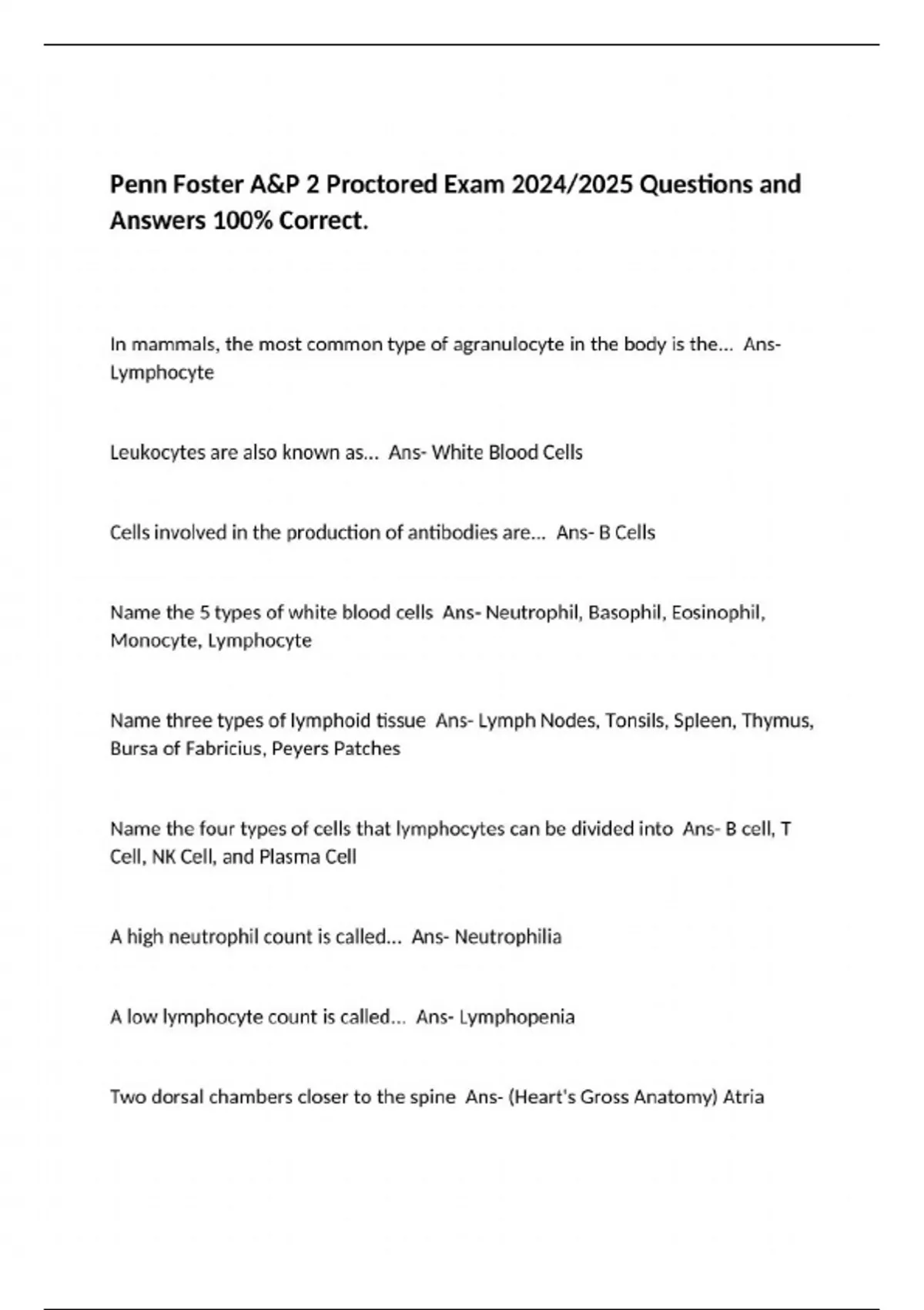 Penn Foster A&P 2 Proctored Exam 2024/2025 Questions and Answers 100% Correct.