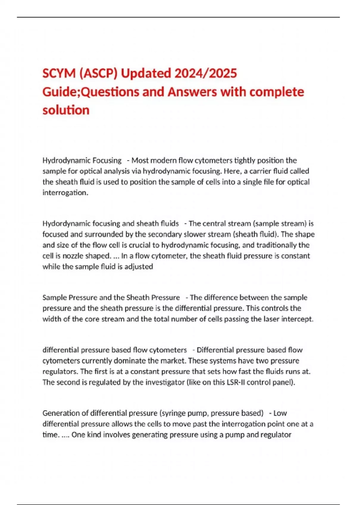 SCYM (ASCP) Updated 2024/2025 Guide;Questions and Answers with complete solution