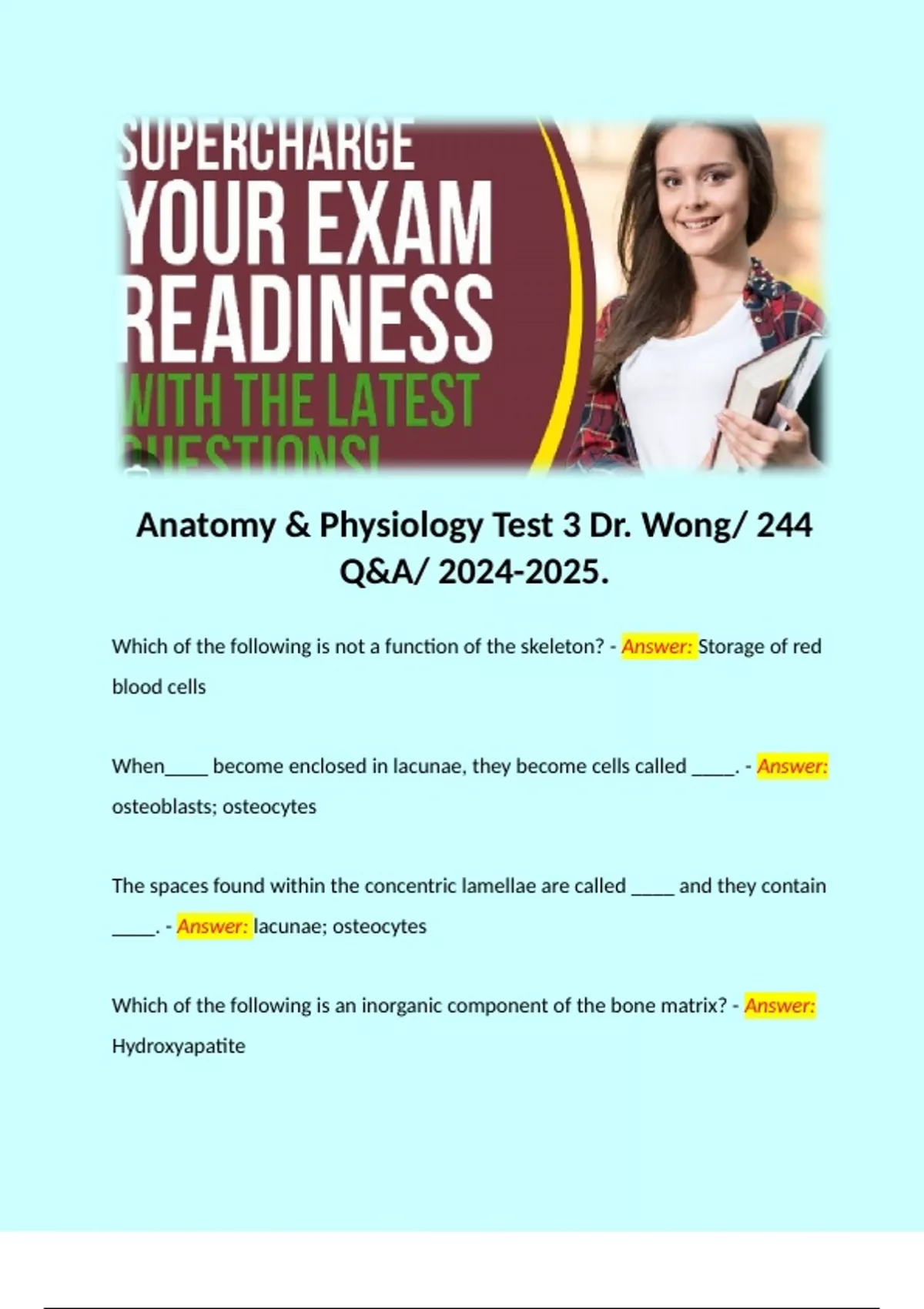 Which of the following is not a function of the skeleton? - Answer: Storage of red