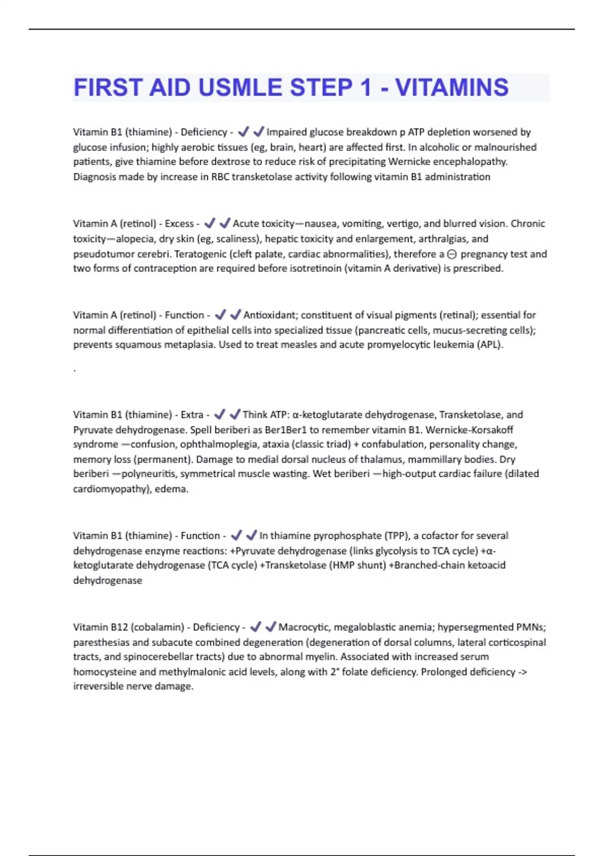 Vitamin B1 (thiamine) - Deficiency - Impaired glucose breakdown p ATP depletion worsened by