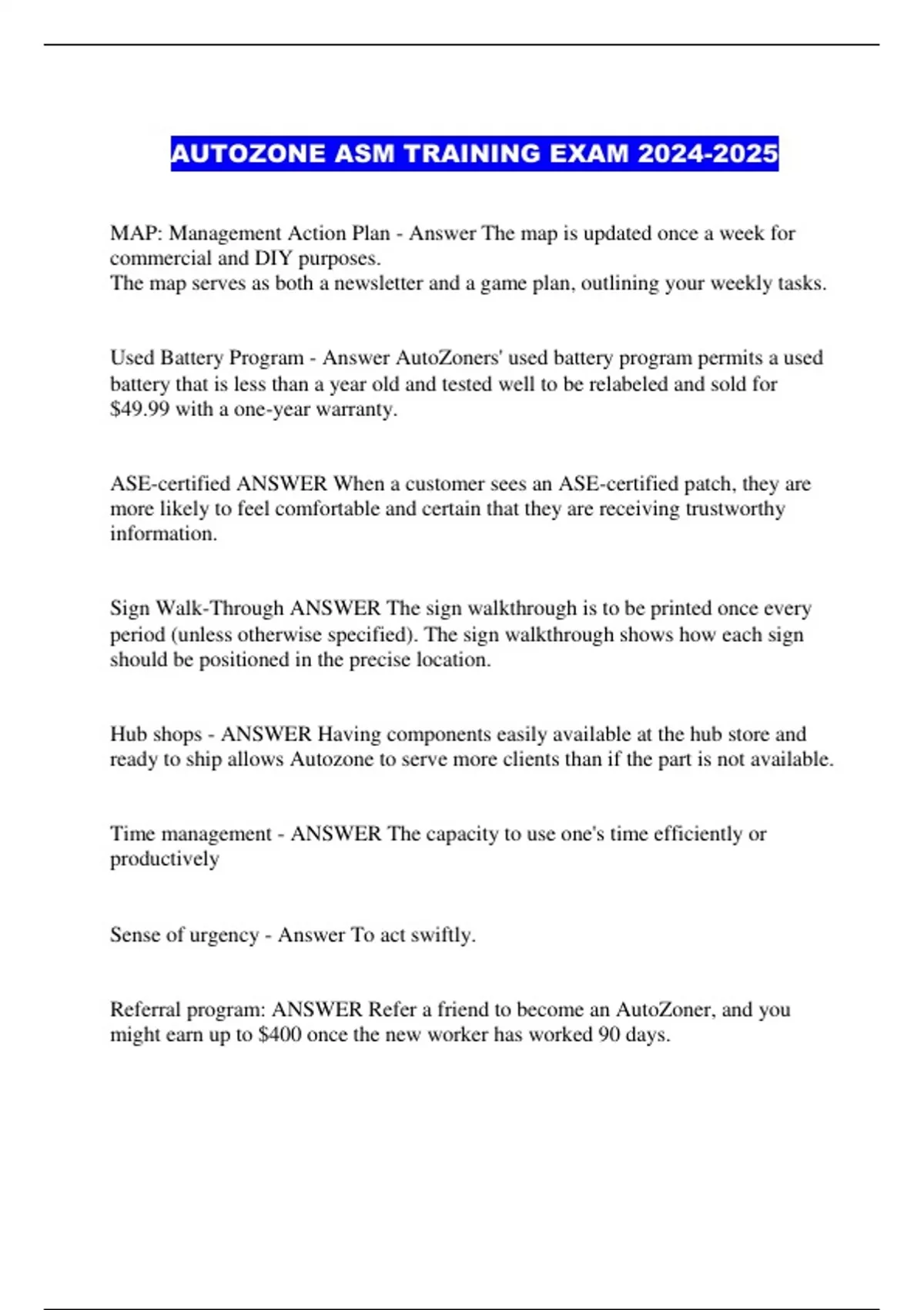 AUTOZONE ASM TRAINING EXAM 2024-2025