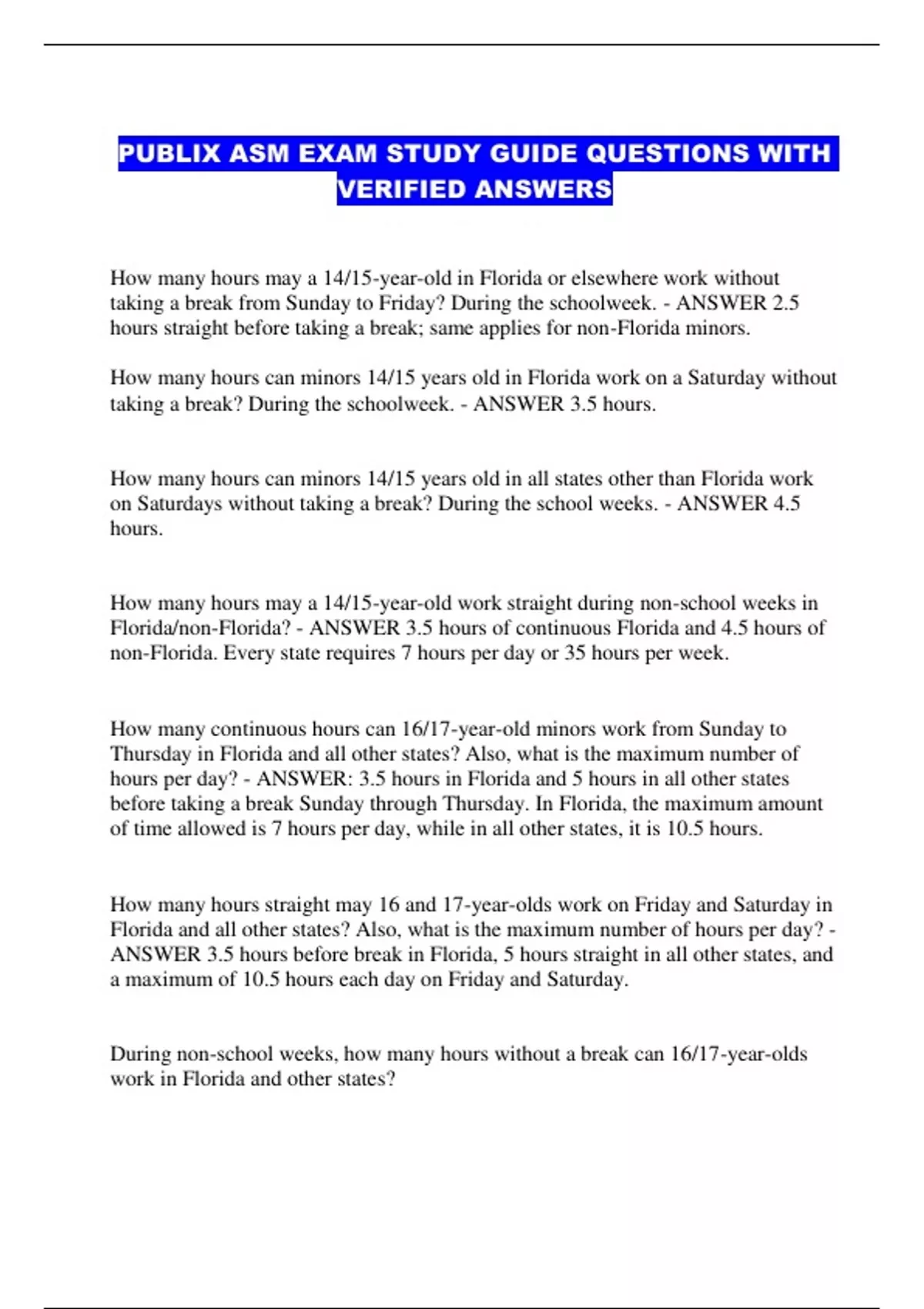PUBLIX ASM EXAM STUDY GUIDE QUESTIONS WITH