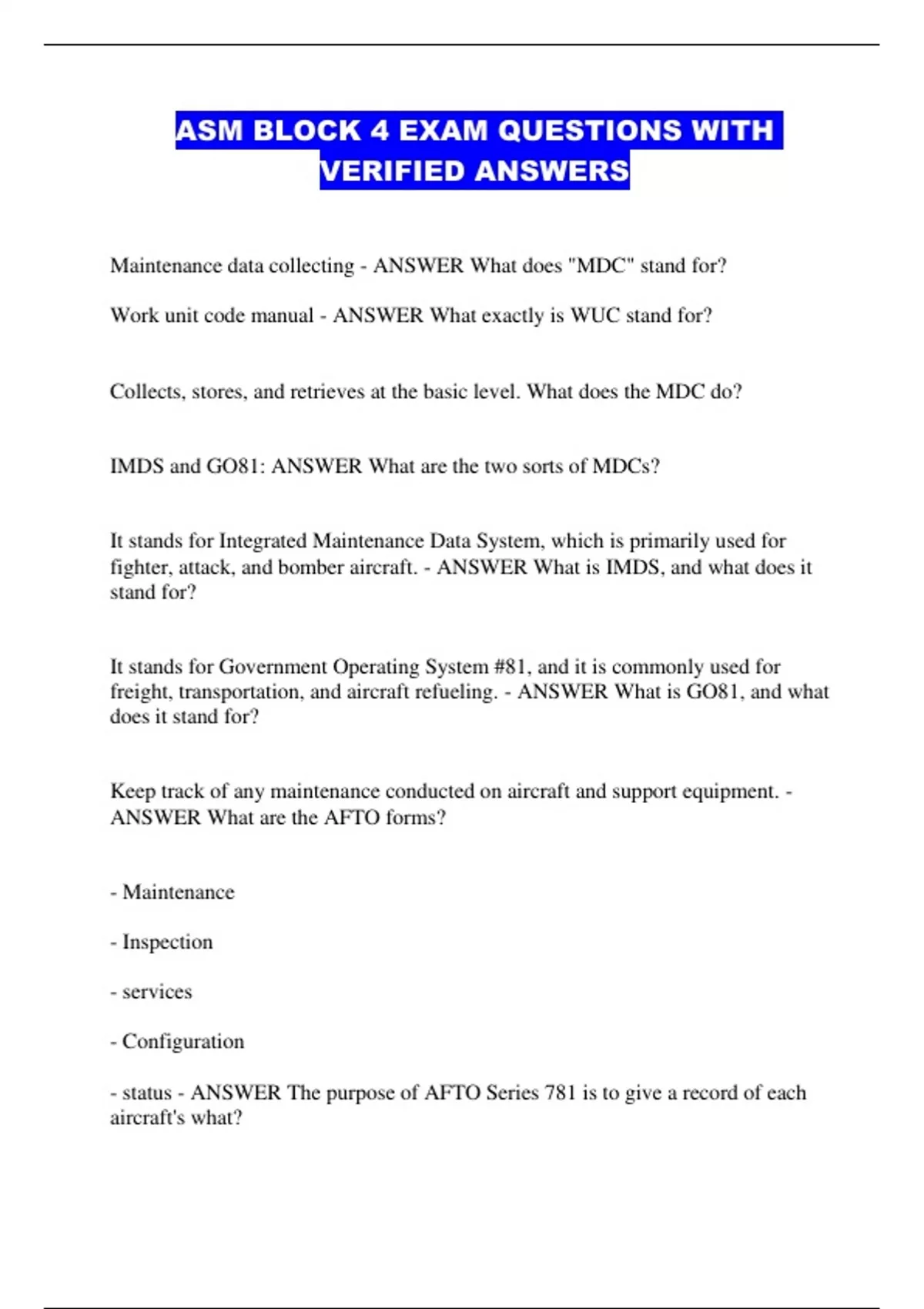 ASM BLOCK 4 EXAM QUESTIONS WITH