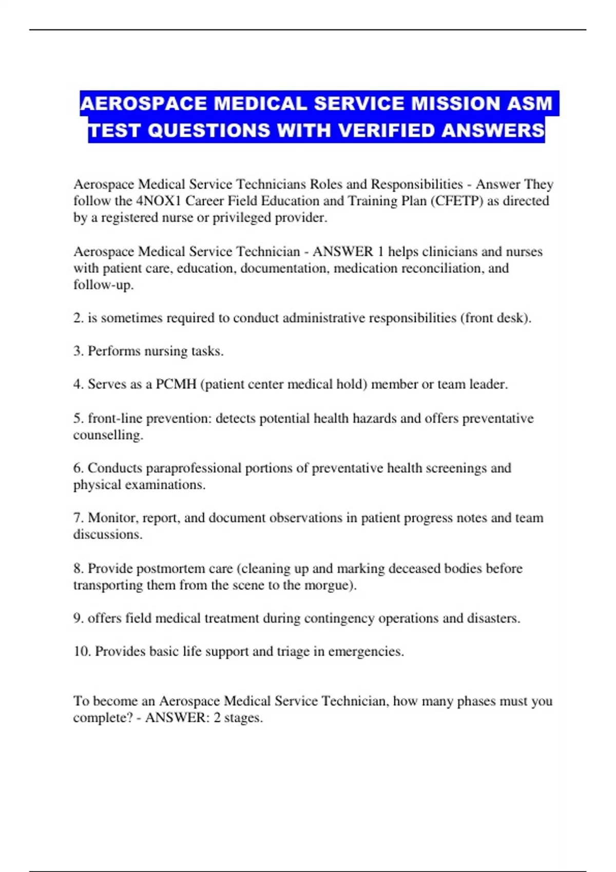 Aerospace Medical Service Technicians Roles and Responsibilities - Answer They