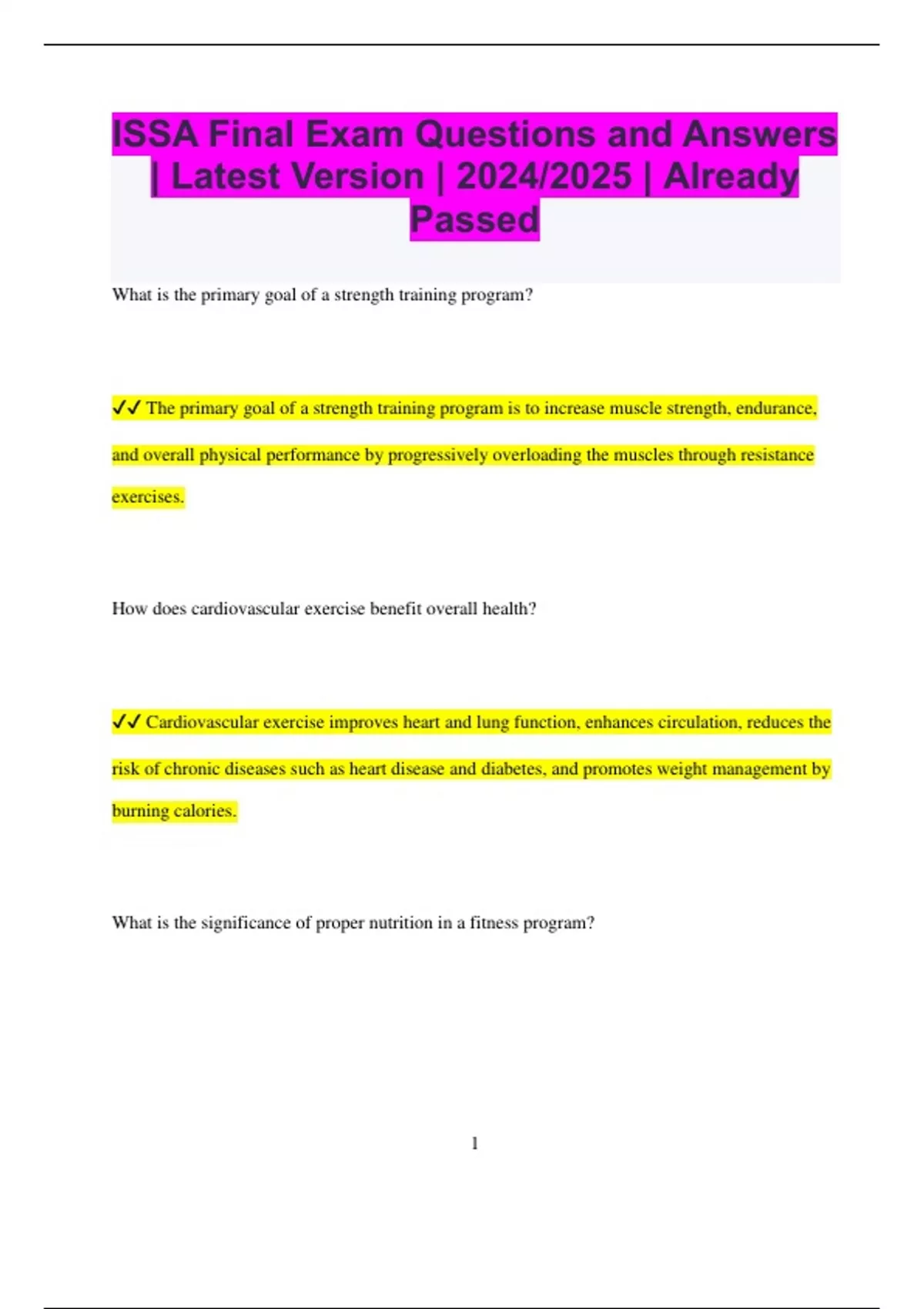 ✔✔ The primary goal of a strength training program is to increase muscle strength, endurance,