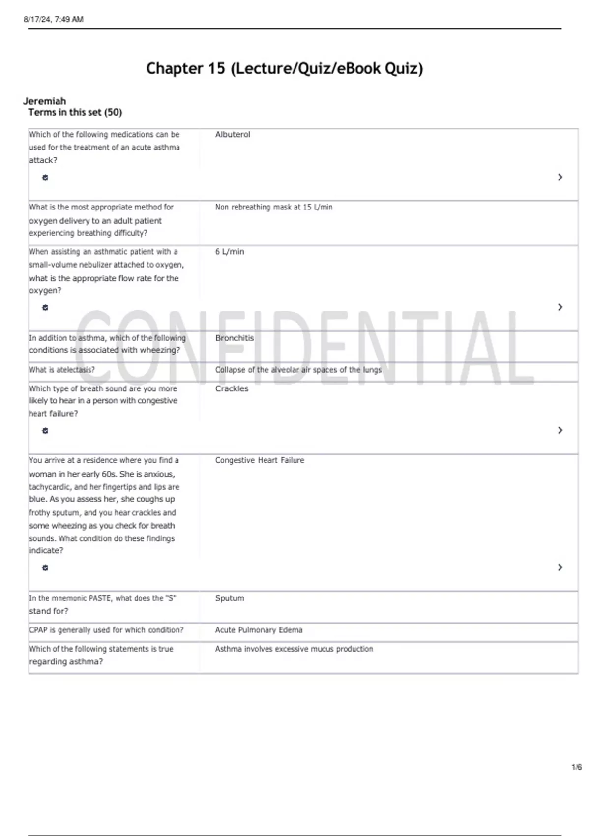 When assisting an asthmatic patient with a 6 L/min