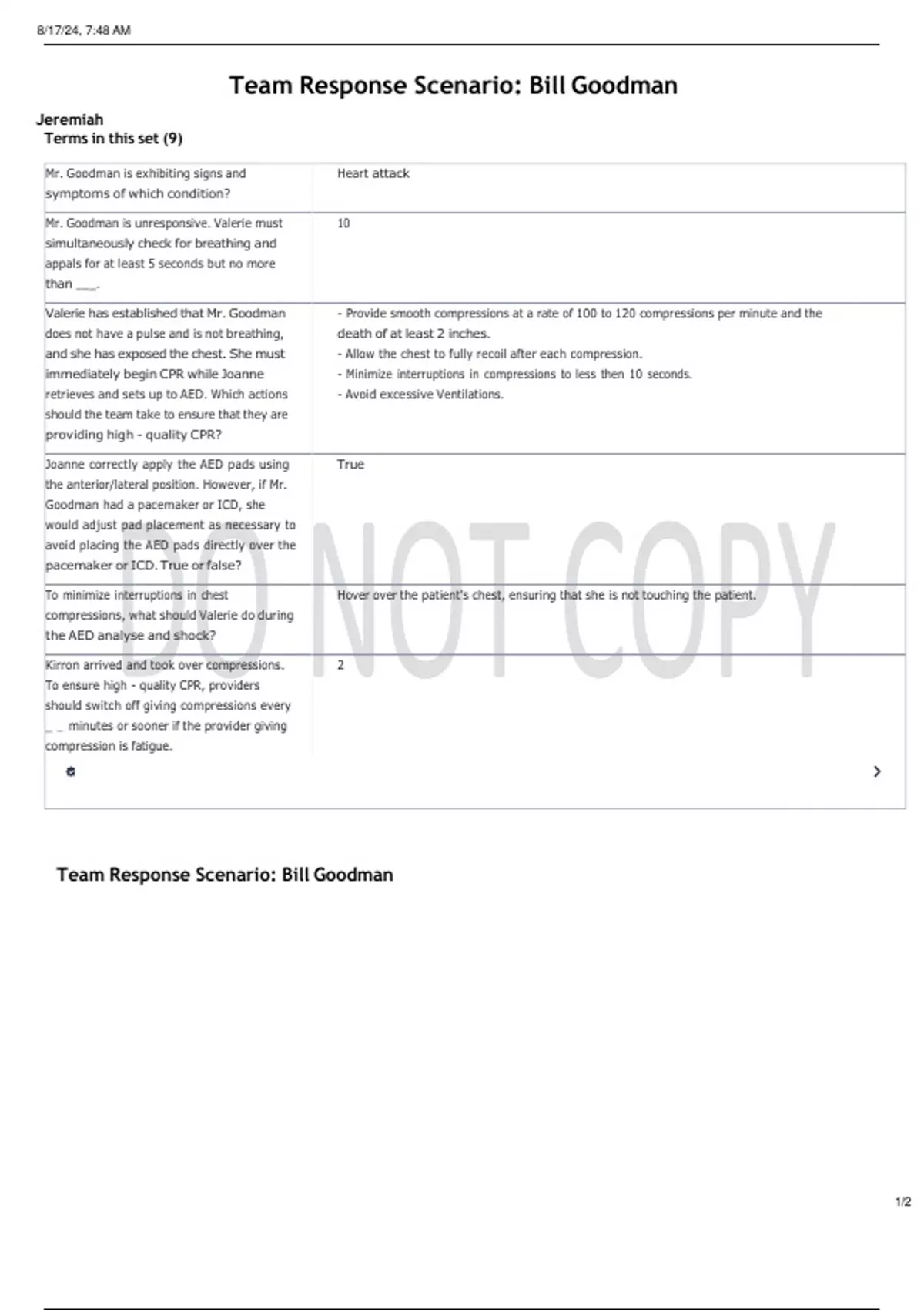 Valerie has established that Mr. Goodman - Provide smooth compressions at a rate of 100 to 120 compressions per minute and the
