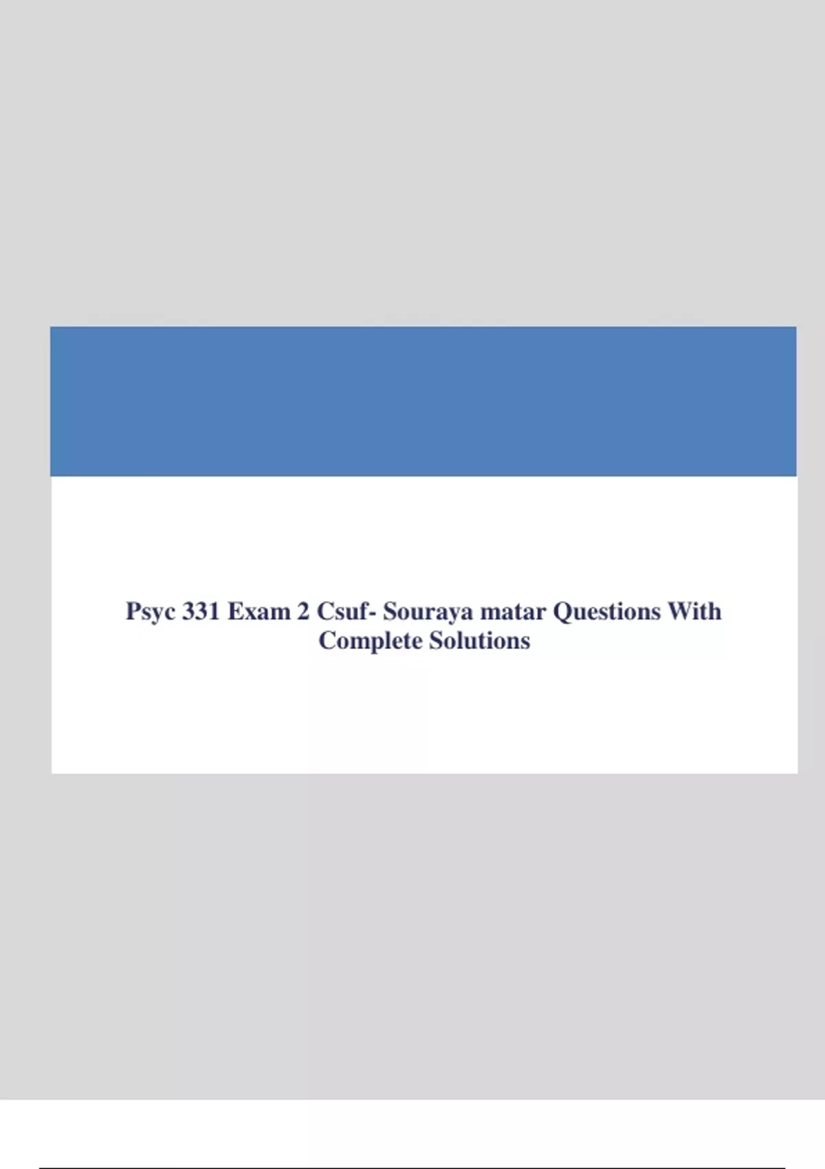 , Psyc 331 Exam 2 Csuf- Souraya matar Questions With Complete Solutions