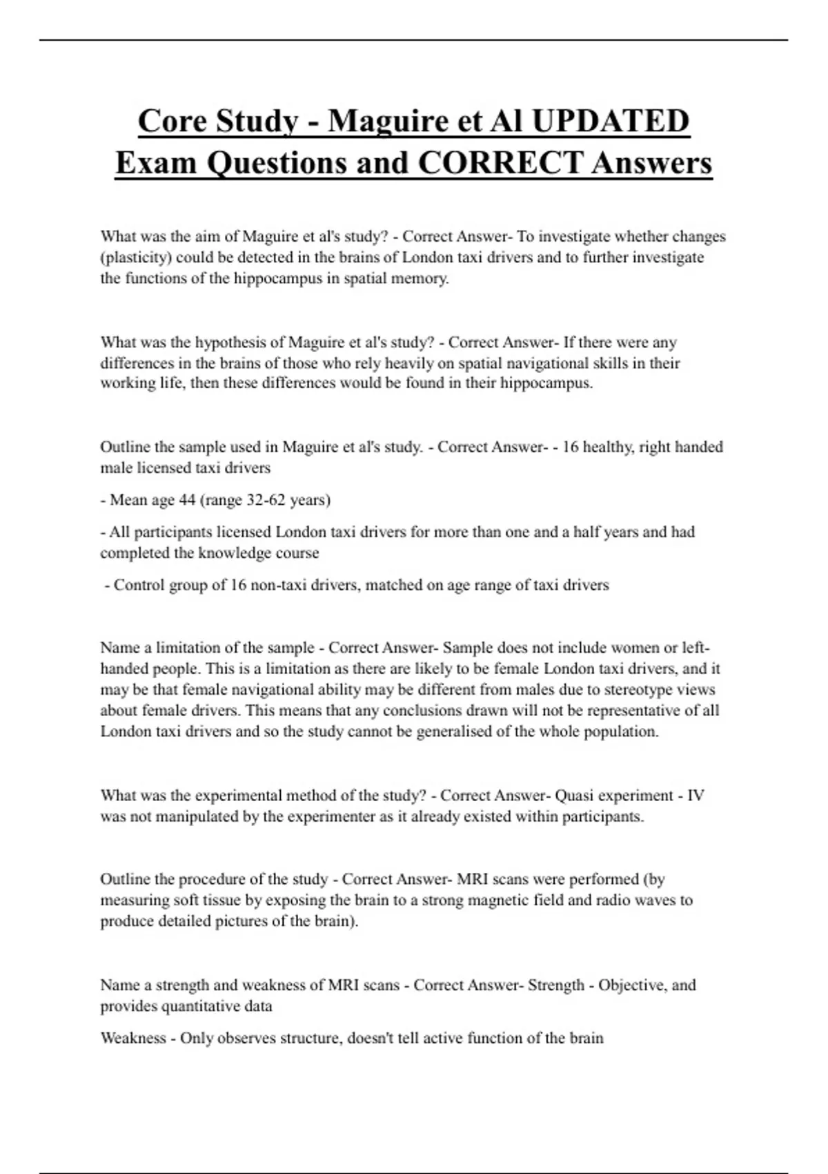 Outline the sample used in Maguire et al's study. - Correct Answer- - 16 healthy, right handed