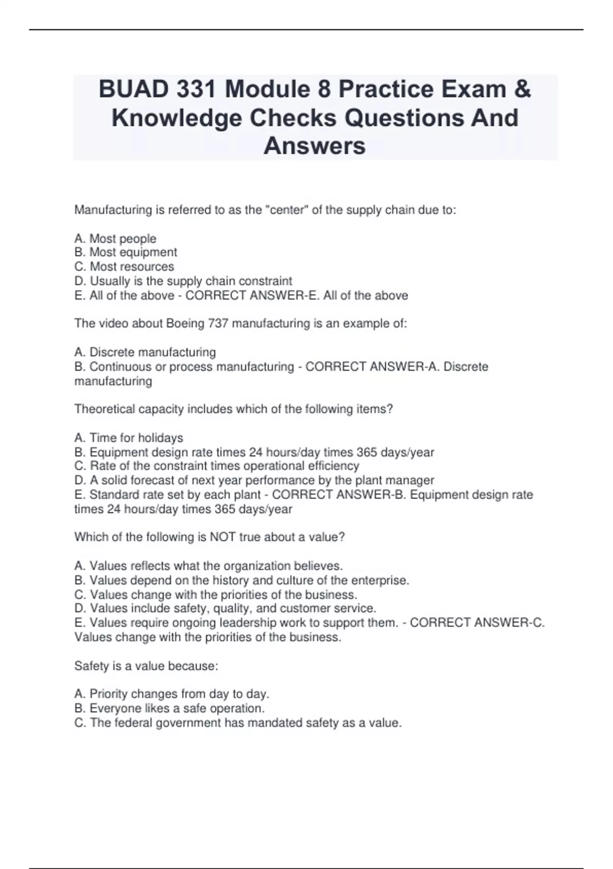 B. Continuous or process manufacturing - CORRECT ANSWER-A. Discrete