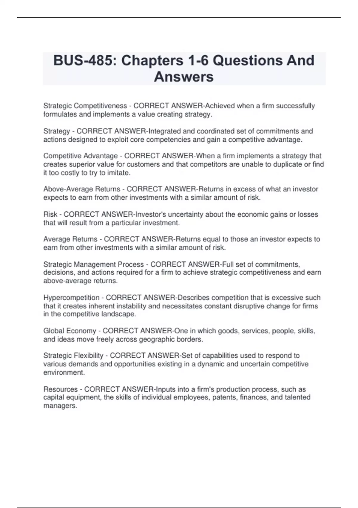 Strategic Flexibility - CORRECT ANSWER-Set of capabilities used to respond to