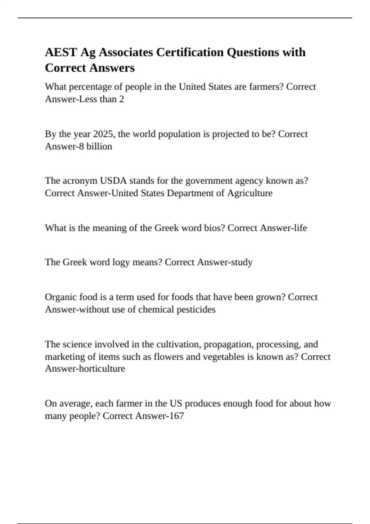 AEST Ag Associates Certification Questions with Correct Answers