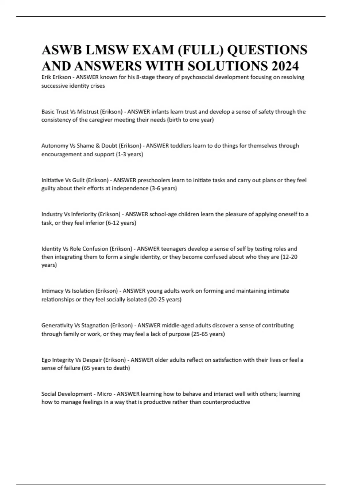 Basic Trust Vs Mistrust (Erikson) - ANSWER infants learn trust and develop a sense of safety through the