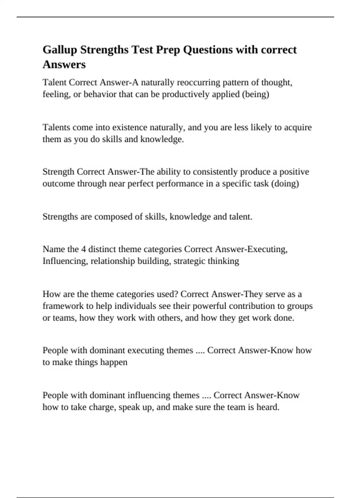 Gallup Strengths Test Prep Questions with correct Answers.d