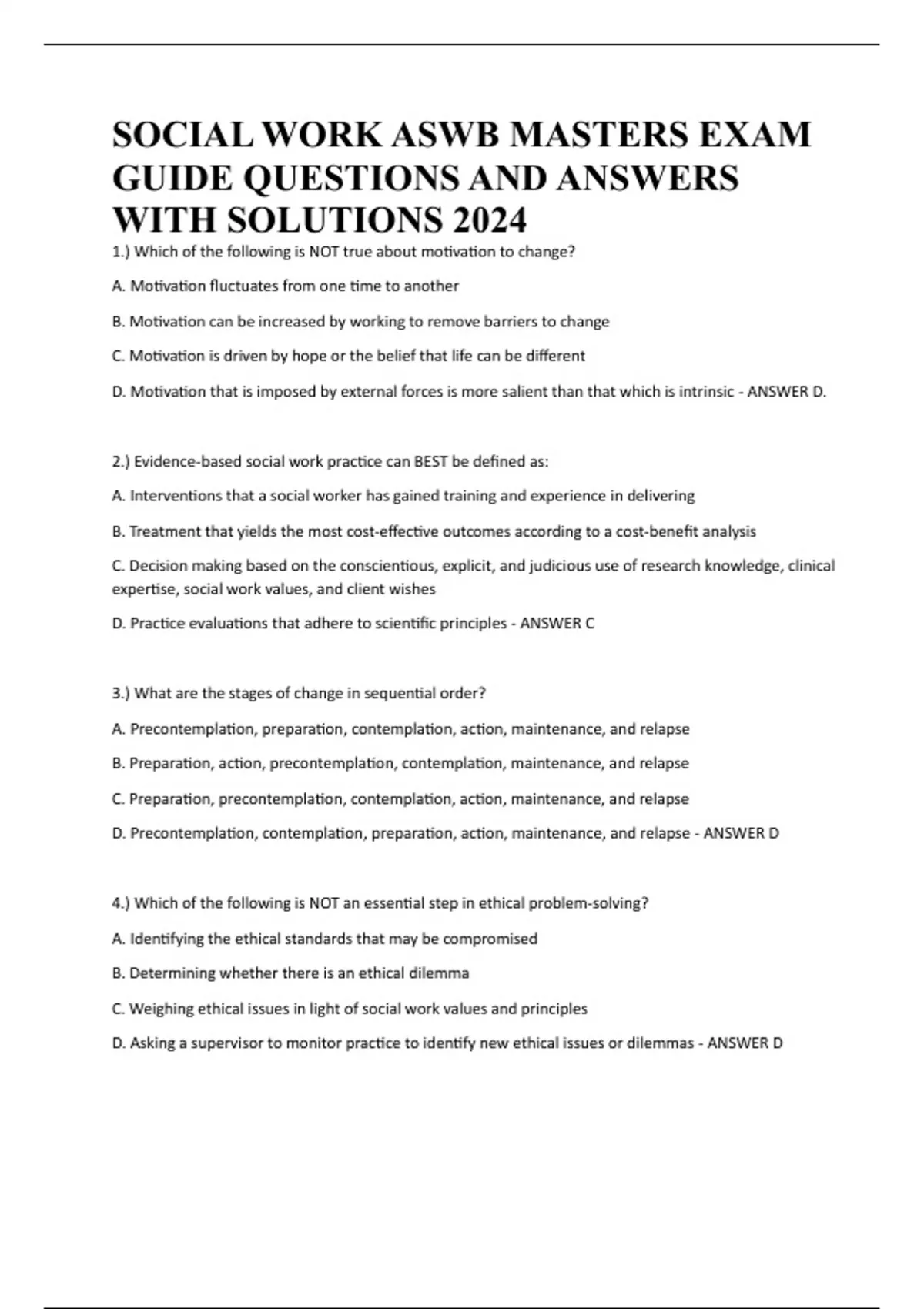 4.) Which of the following is NOT an essential step in ethical problem-solving?