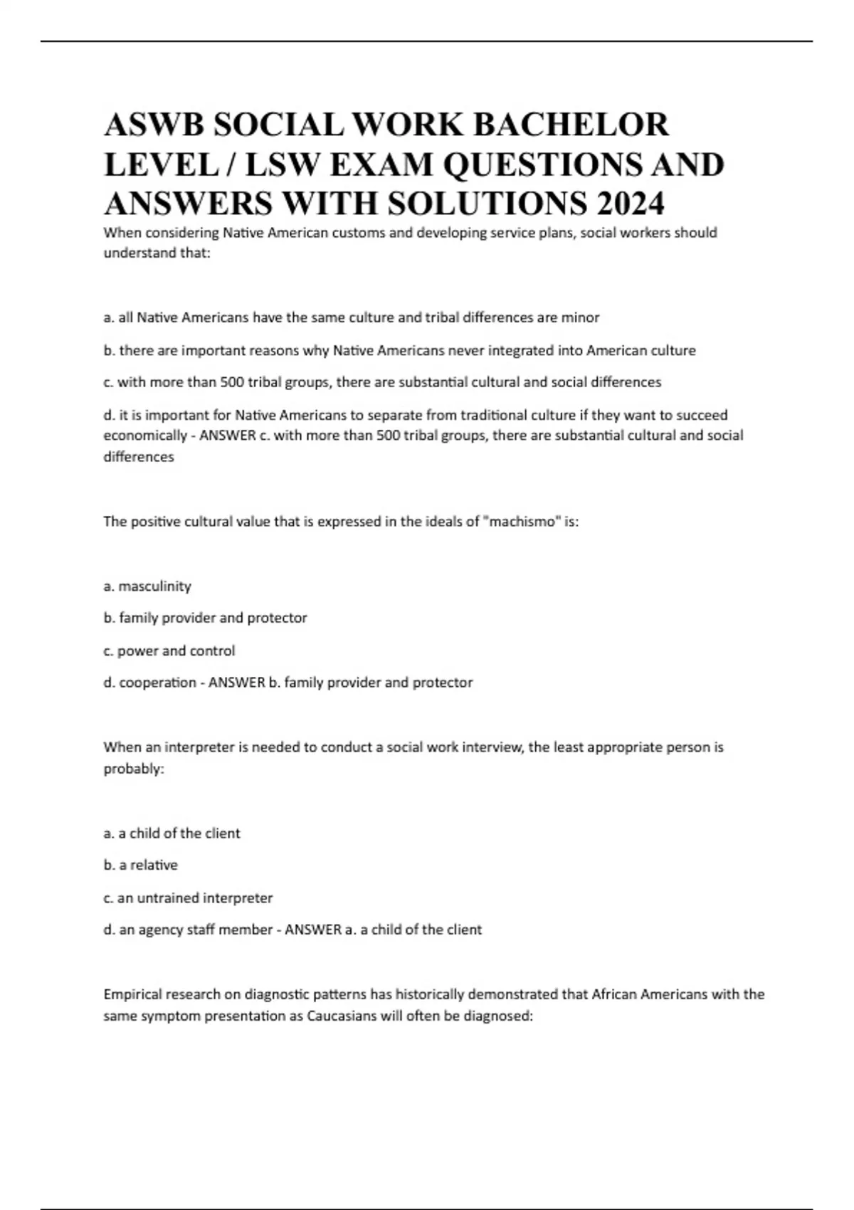 LEVEL / LSW EXAM QUESTIONS AND