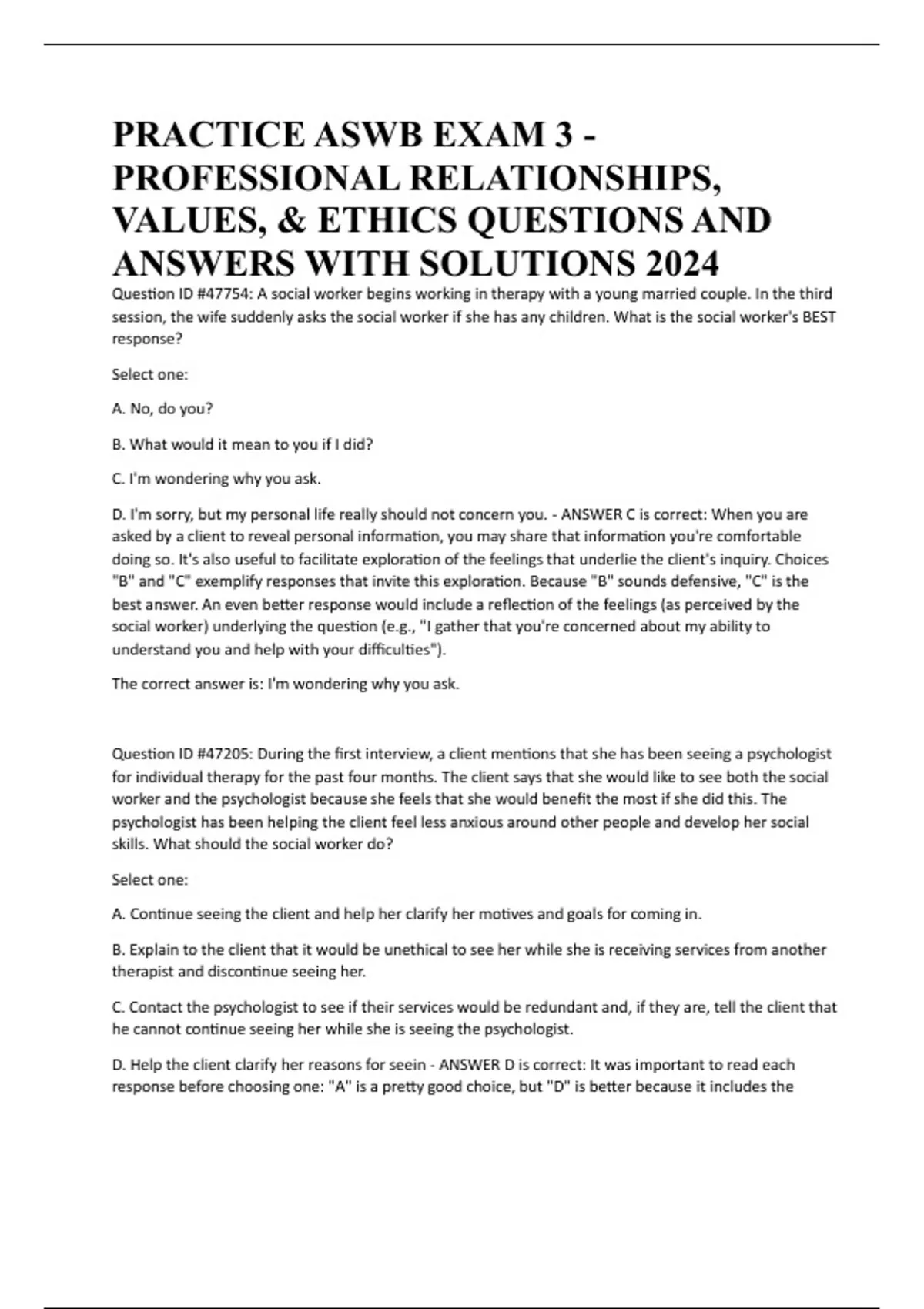 clients. - ANSWER D is correct: This is the correct answer based on NASW's Code of Ethics. Information