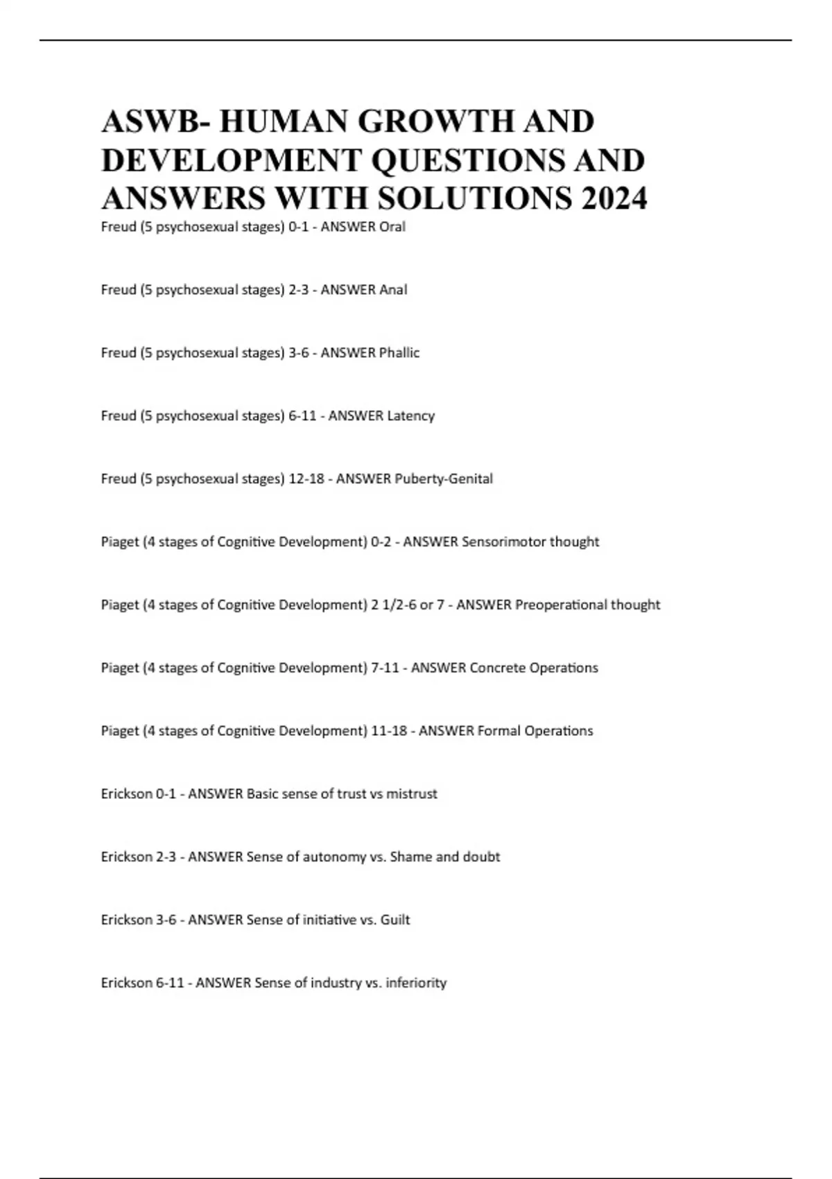Freud (5 psychosexual stages) 12-18 - ANSWER Puberty-Genital
