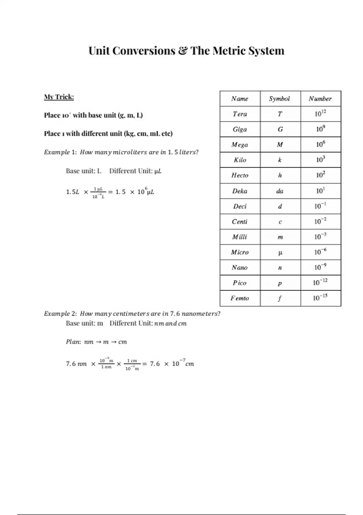Unit Conversions & The Metric System