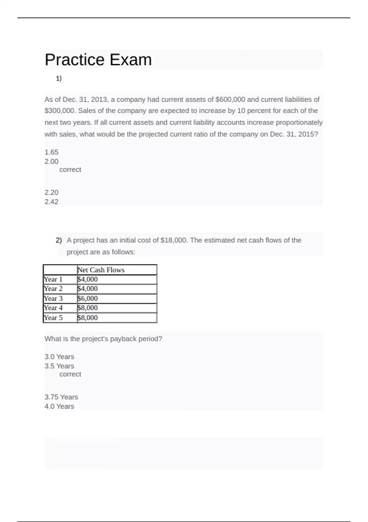 2) A project has an initial cost of $18,000. The estimated net cash flows of the