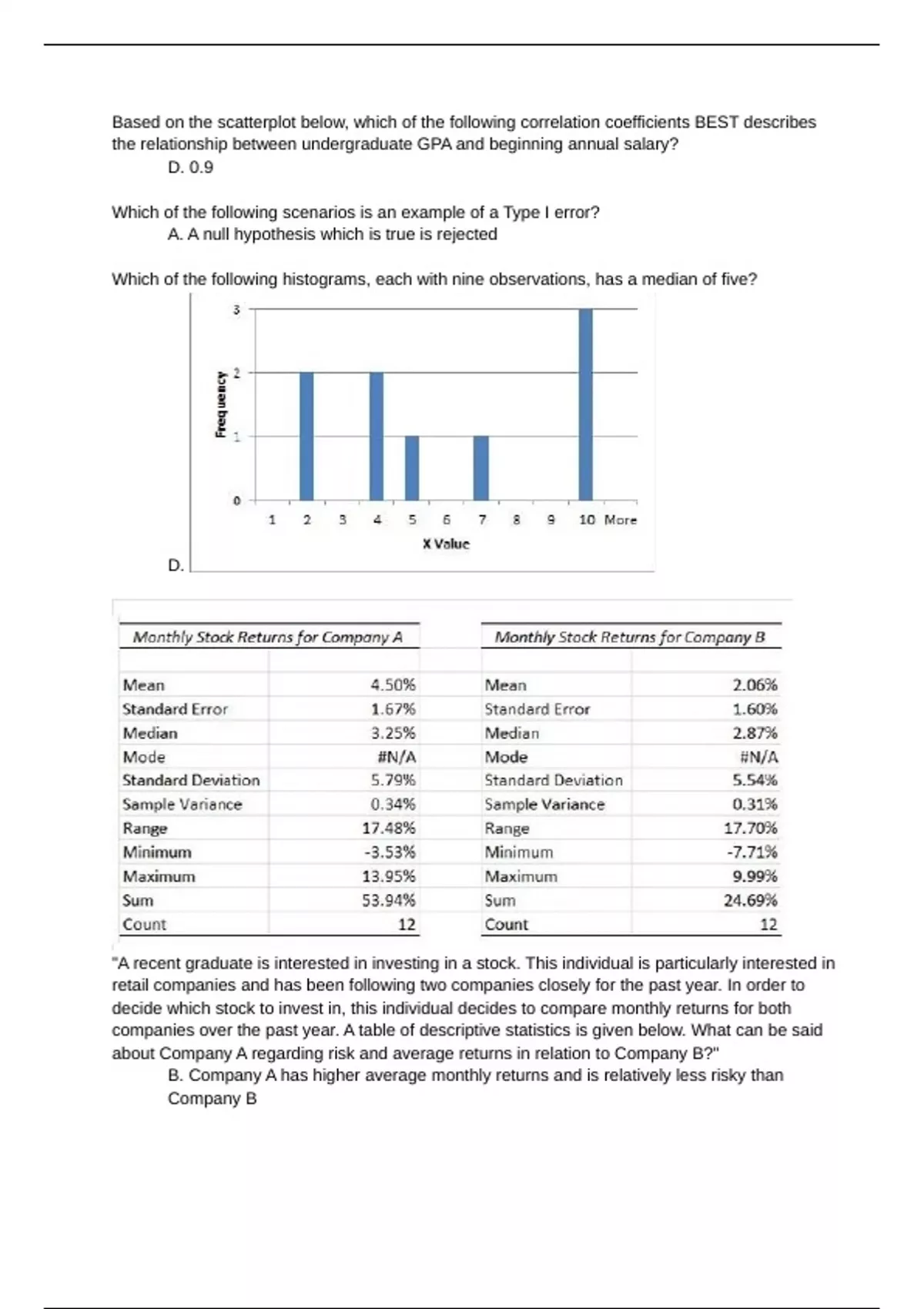 decide which stock to invest in, this individual decides to compare monthly returns for both