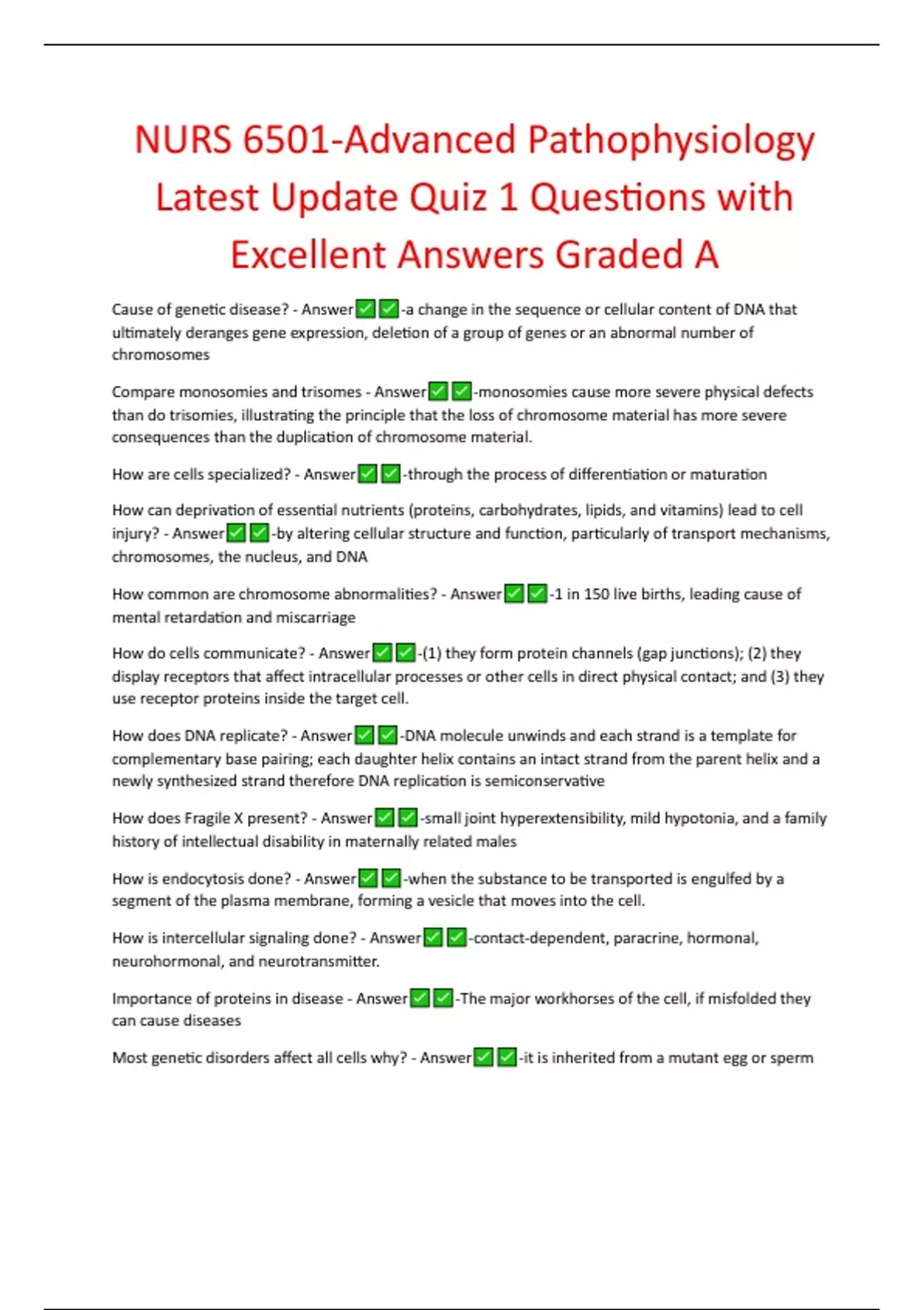 NURS 6501-Advanced Pathophysiology Latest Update Quiz 1 Questions with Excellent Answers Graded A