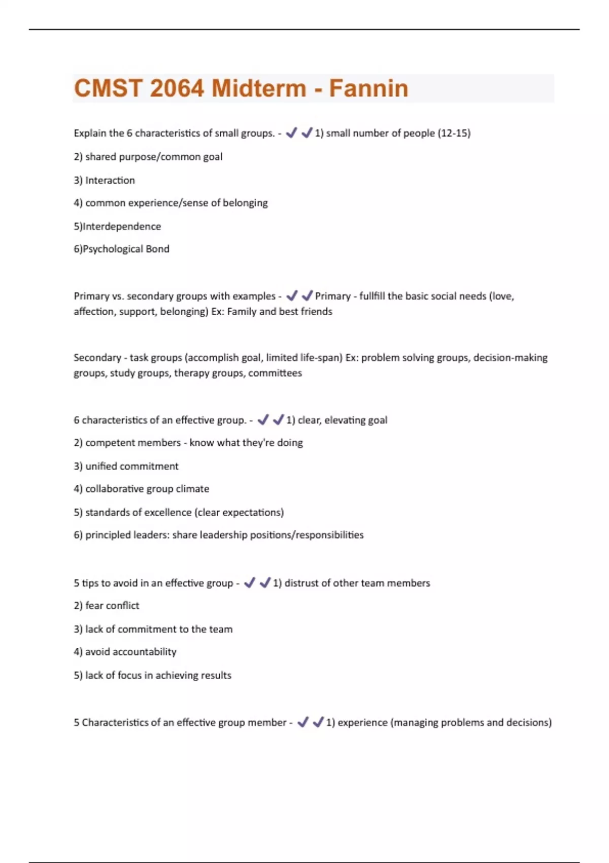 Explain the 6 characteristics of small groups. - 1) small number of people (12-15)