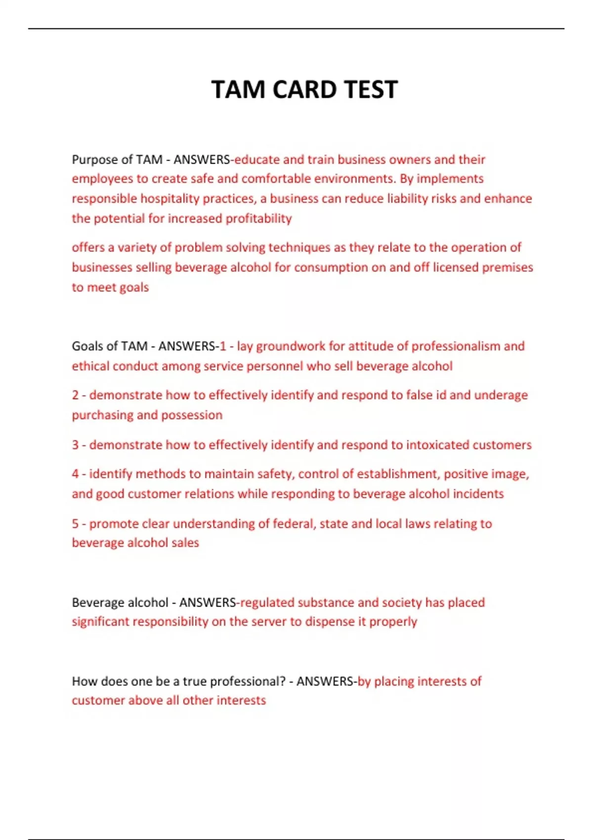 Purpose of TAM - ANSWERS-educate and train business owners and their