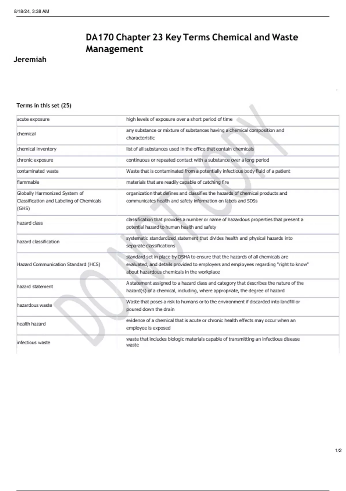 DA170 Chapter 23 Key Terms Chemical and Waste