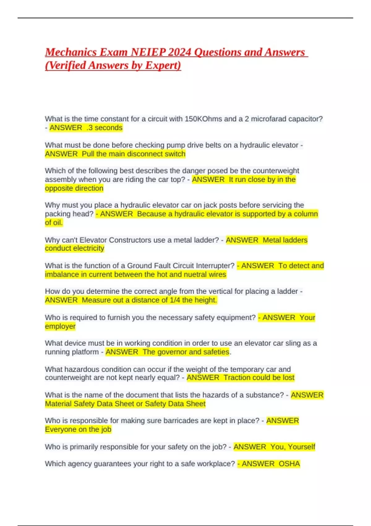 Why can't Elevator Constructors use a metal ladder? - ANSWER Metal ladders