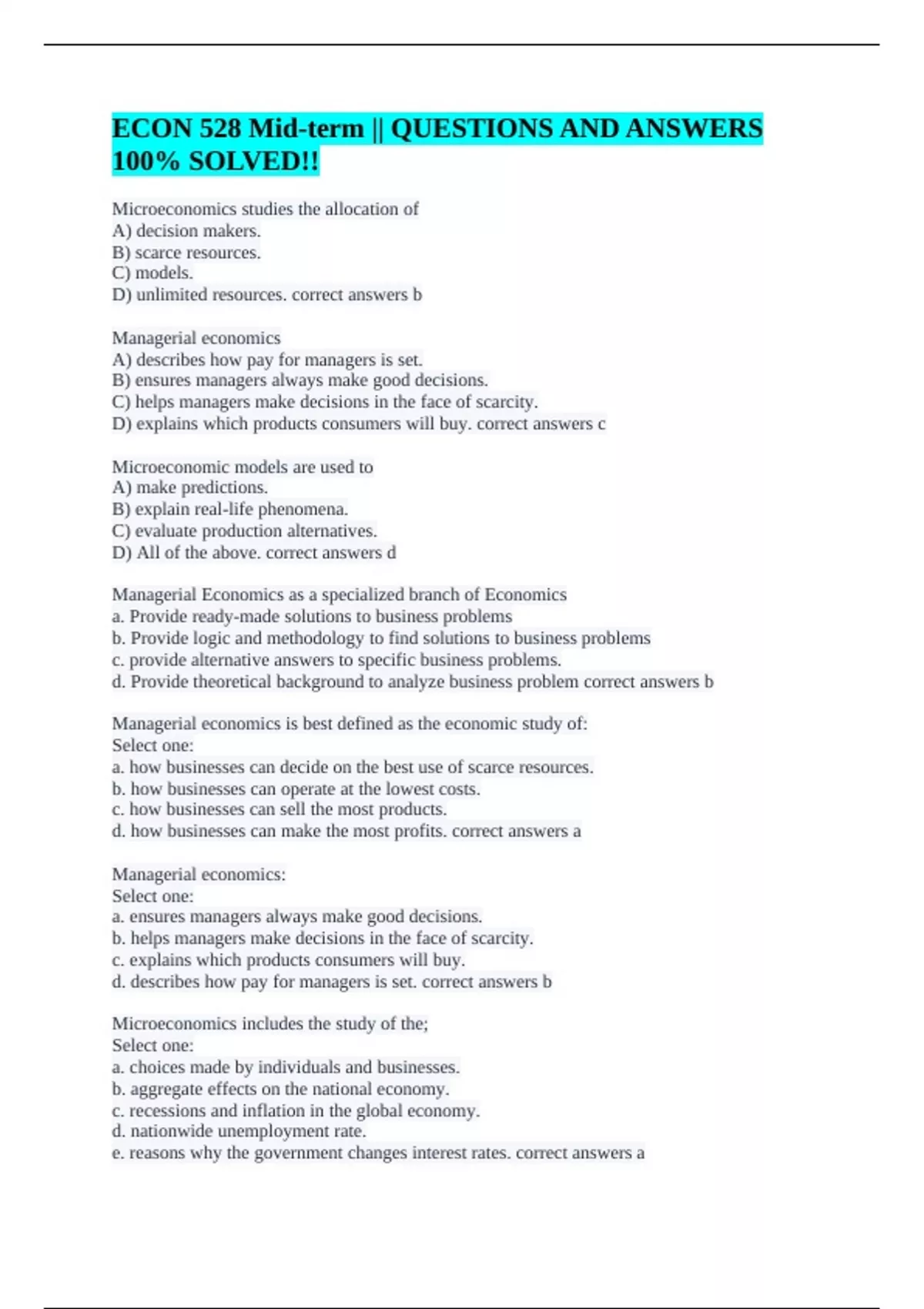 d. how businesses can make the most profits. correct answers a