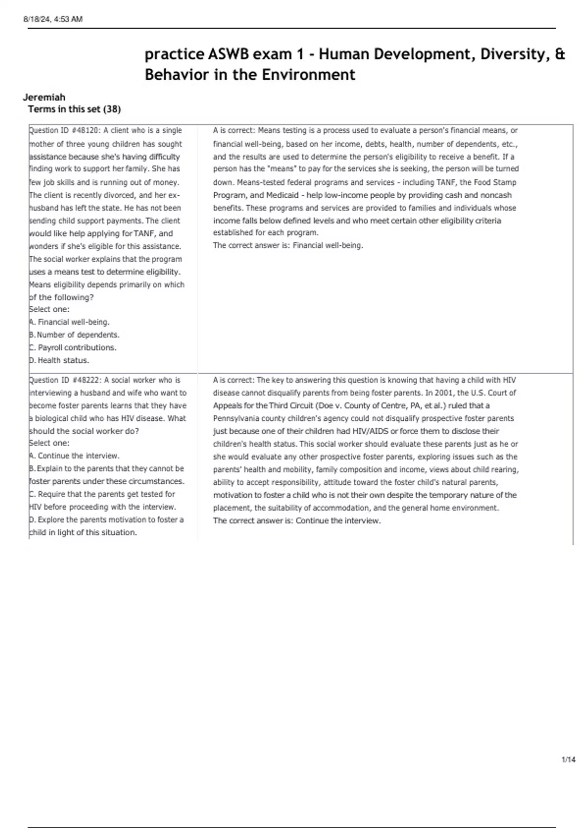 Question ID #48120: A client who is a single A is correct: Means testing is a process used to evaluate a person's financial means, or