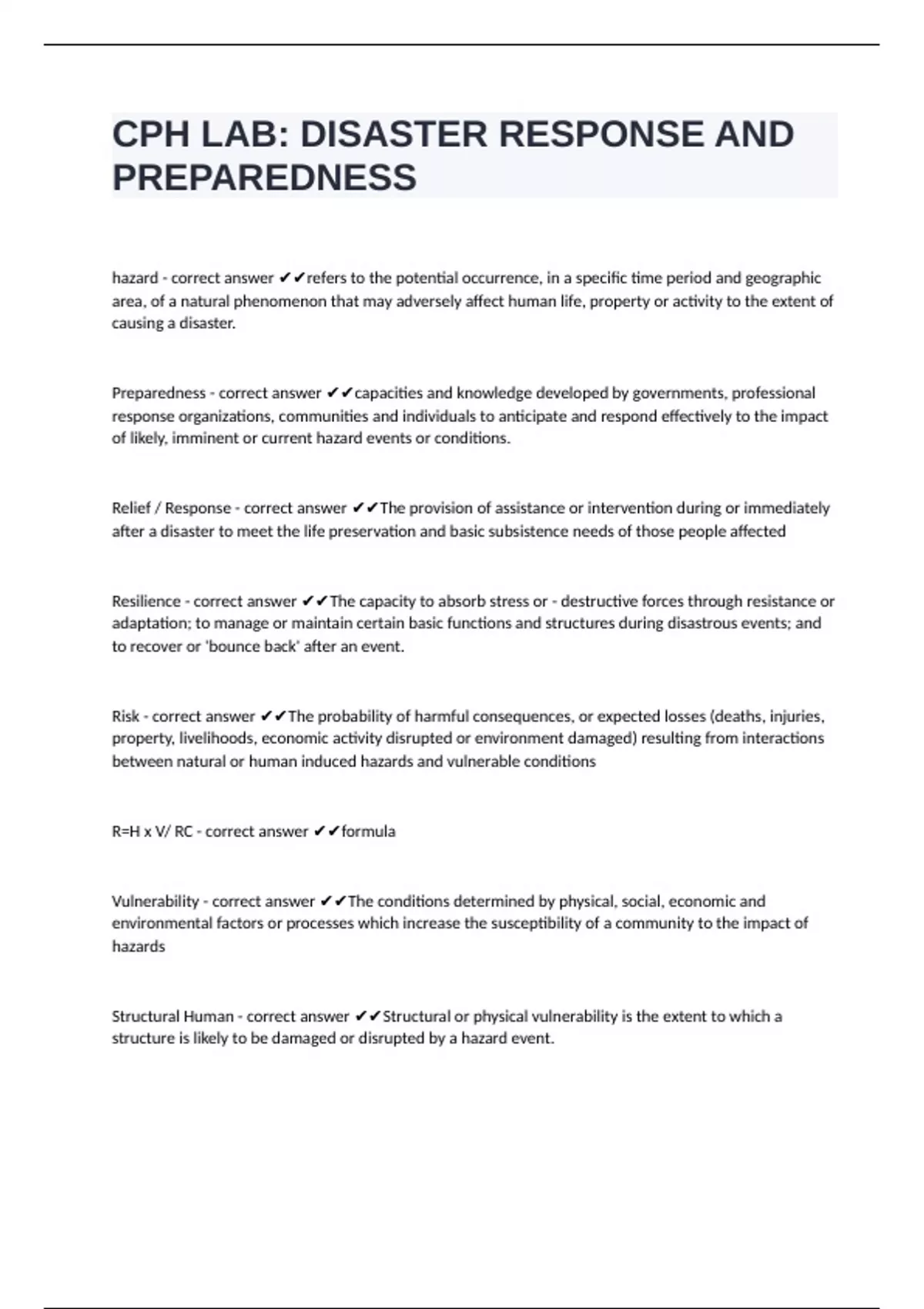 Preparedness - correct answer ✔✔capacities and knowledge developed by governments, professional