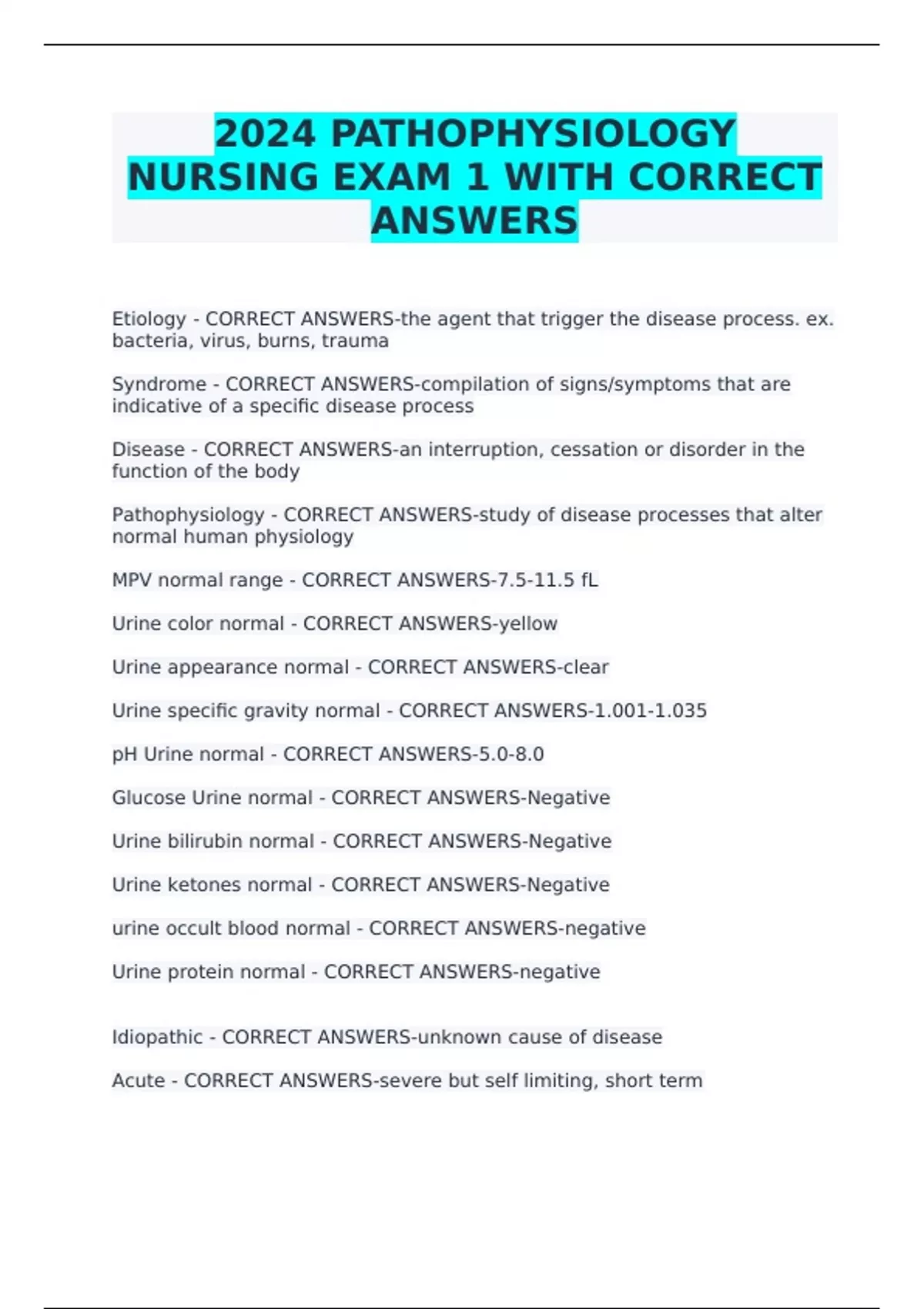 Idiopathic - CORRECT ANSWERS-unknown cause of disease