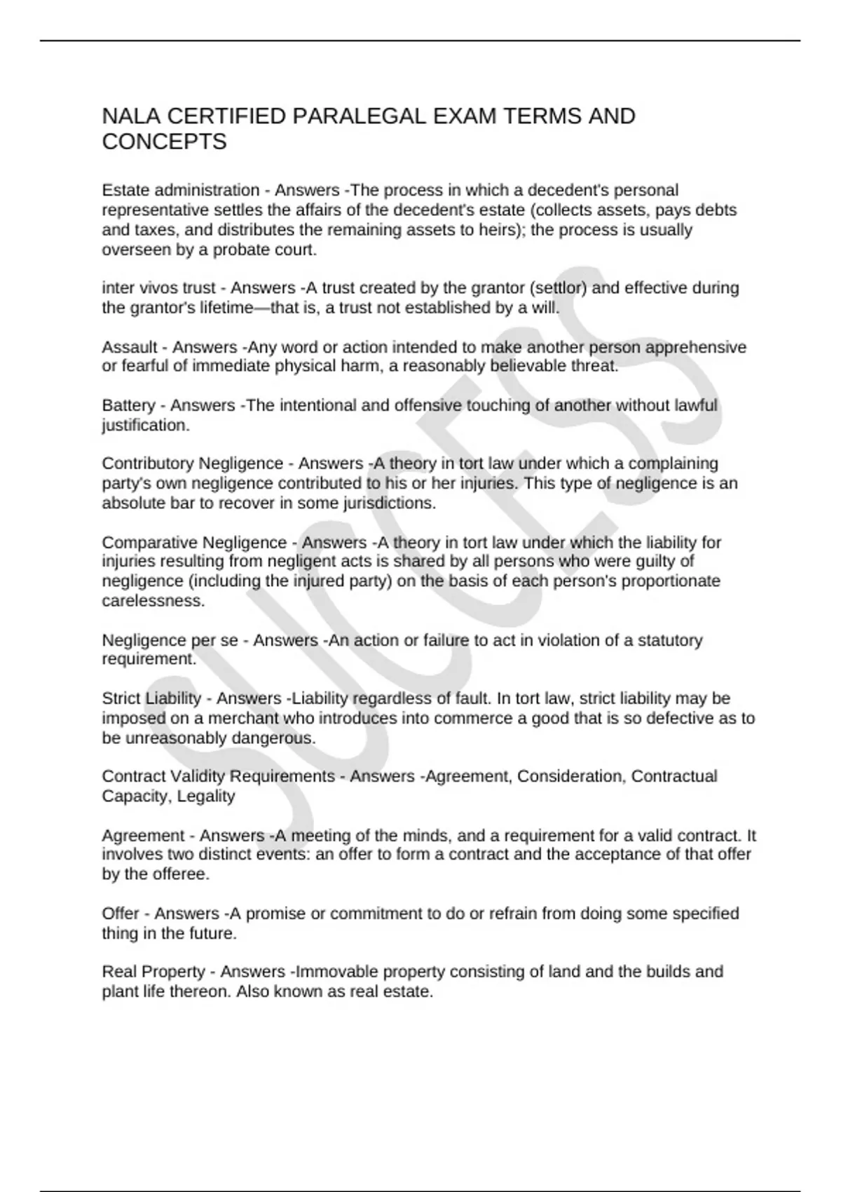 NALA CERTIFIED PARALEGAL EXAM TERMS AND