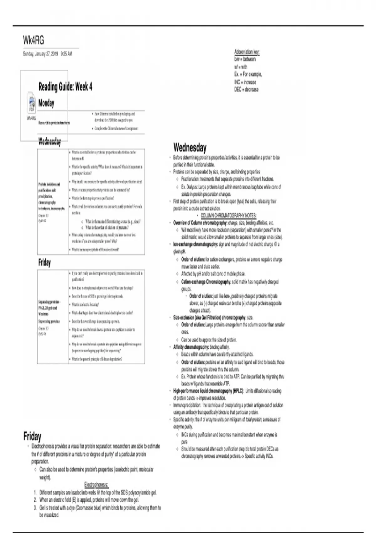 NOTES: READING GUIDE WEEK 4 OF BIOCHEMISTRY (BIOSCI98) AT UCI