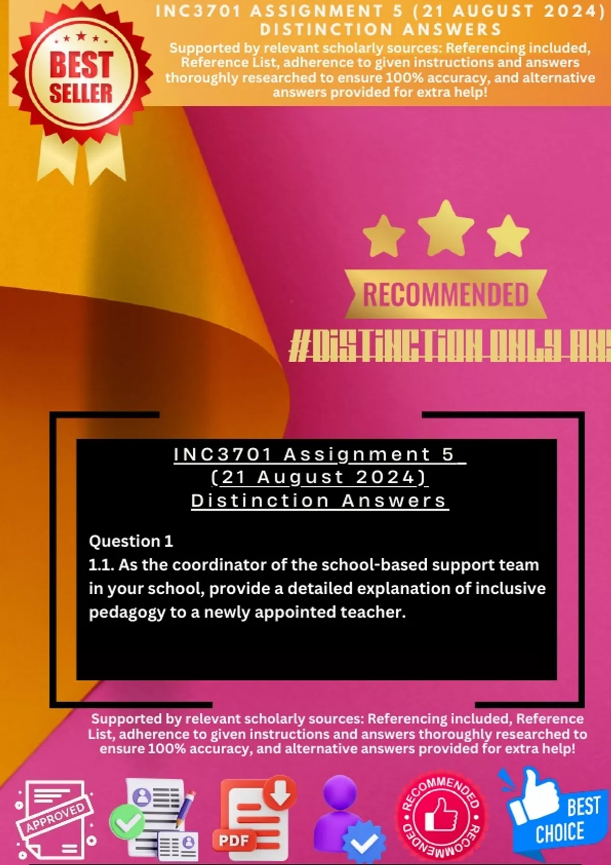 INC3701 ASSIGNMENT 5 (21 AUGUST 2024) DISTINCTION ANSWERS. Question 1. 1.1. As the coordinator of the school-based support team in your school, provide a detailed explanation of inclusive pedagogy to a newly appointed teacher......
