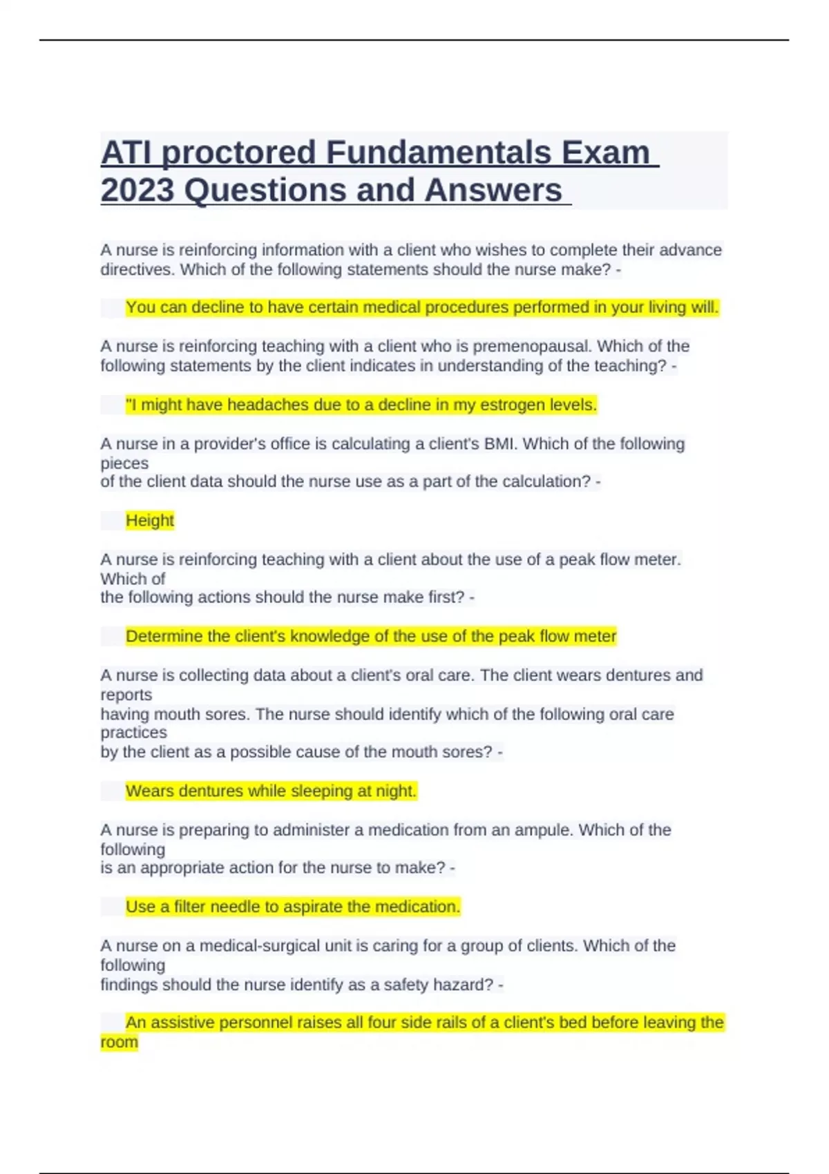 ATI proctored Fundamentals Exam