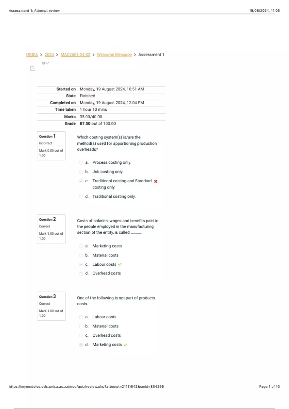 https://mymodules.dtls.unisa.ac.za/mod/quiz/review.php?attempt=21111542&cmid=854256 Page 1 of 10