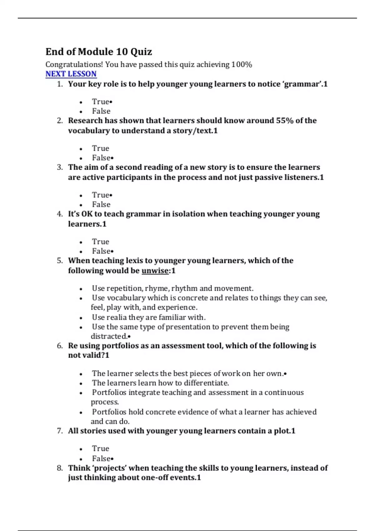 Congratulations! You have passed this quiz achieving 100%