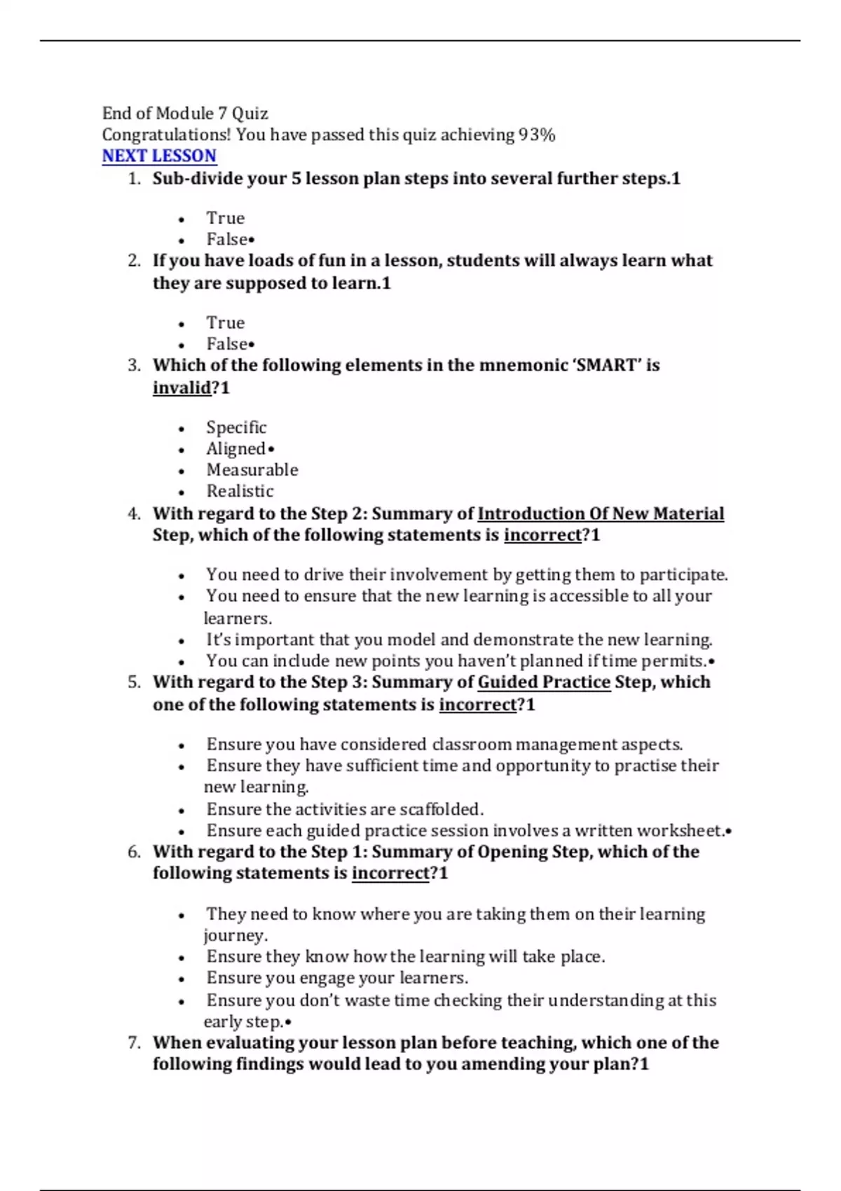 7. When evaluating your lesson plan before teaching, which one of the