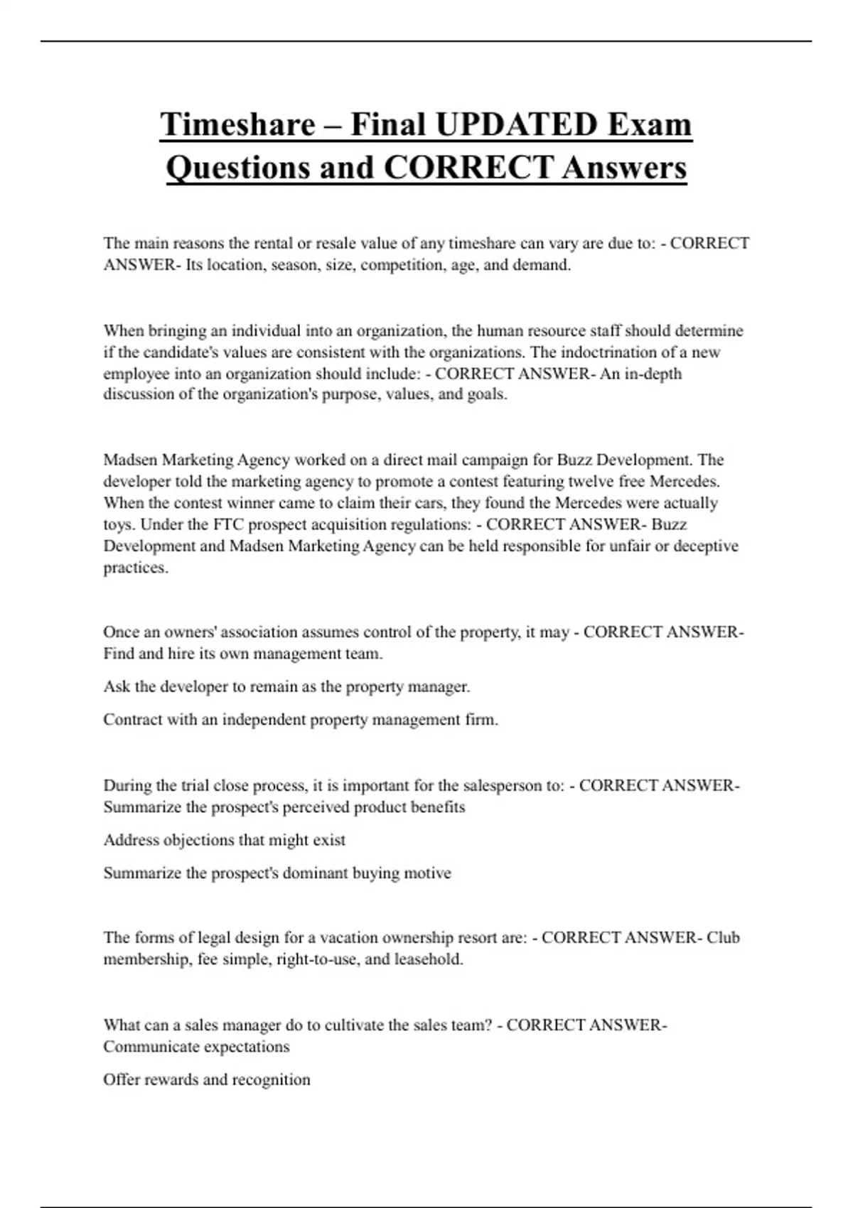 Questions and CORRECT Answers