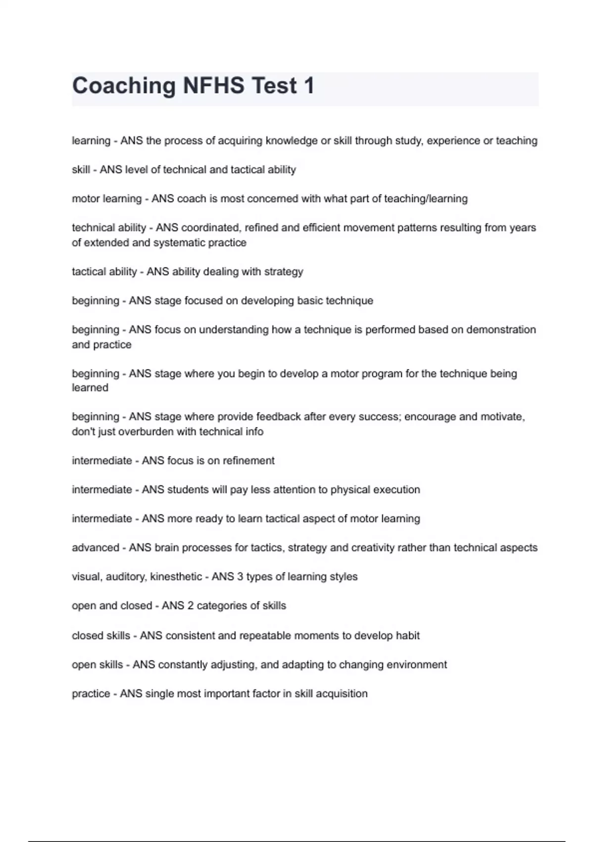 Coaching NFHS Test 1