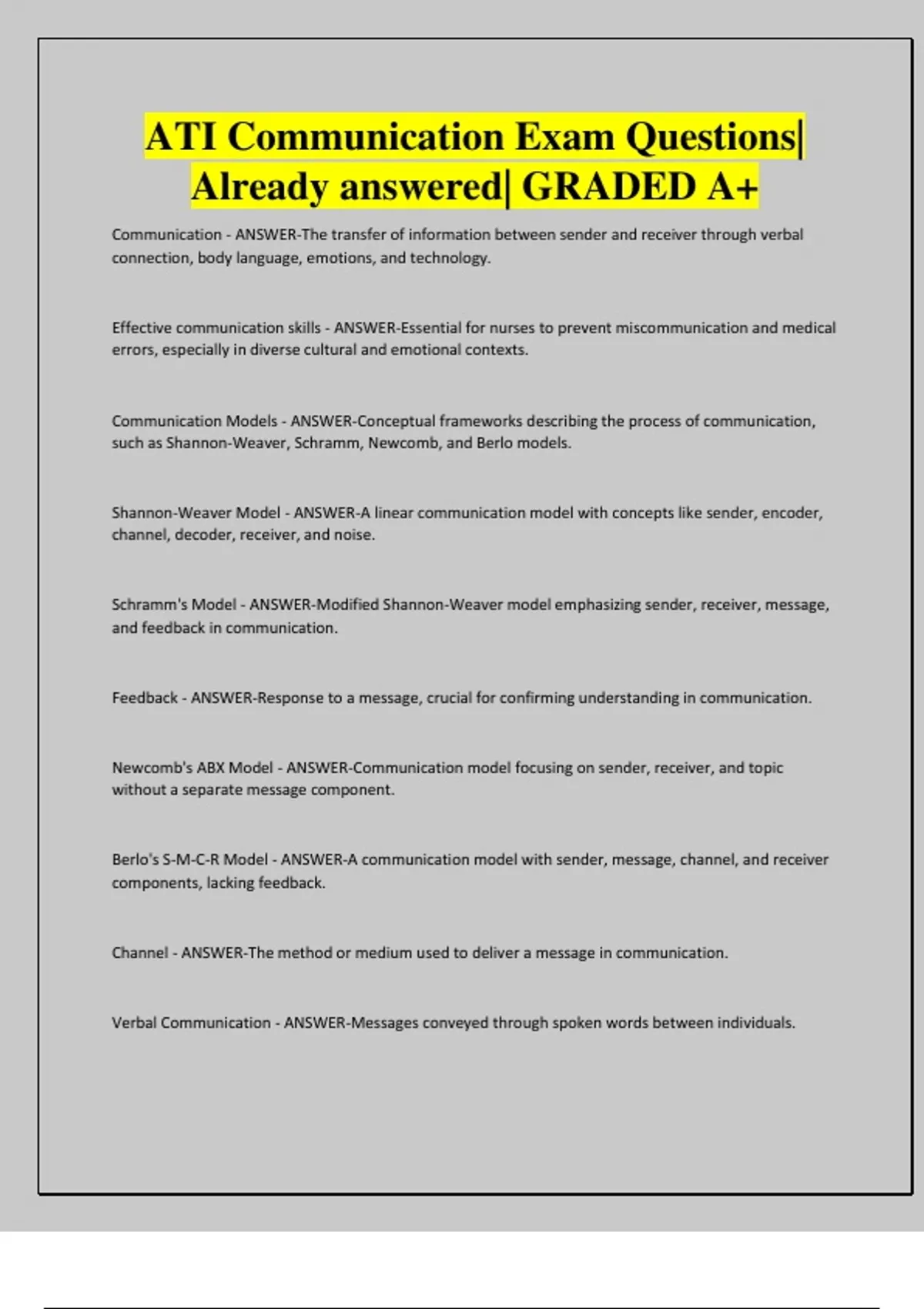 Effective communication skills - ANSWER-Essential for nurses to prevent miscommunication and medical