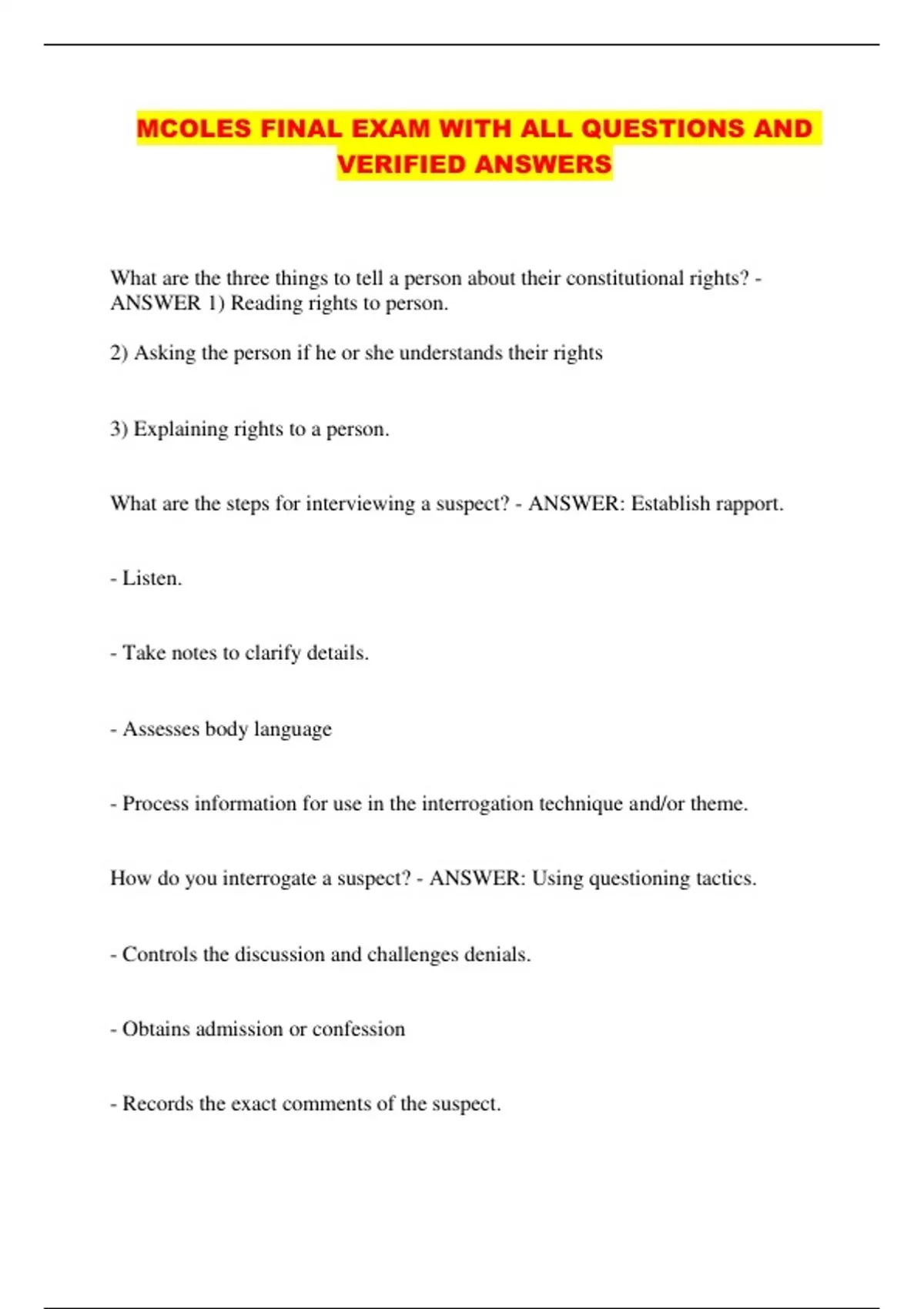 MCOLES FINAL EXAM WITH ALL QUESTIONS AND