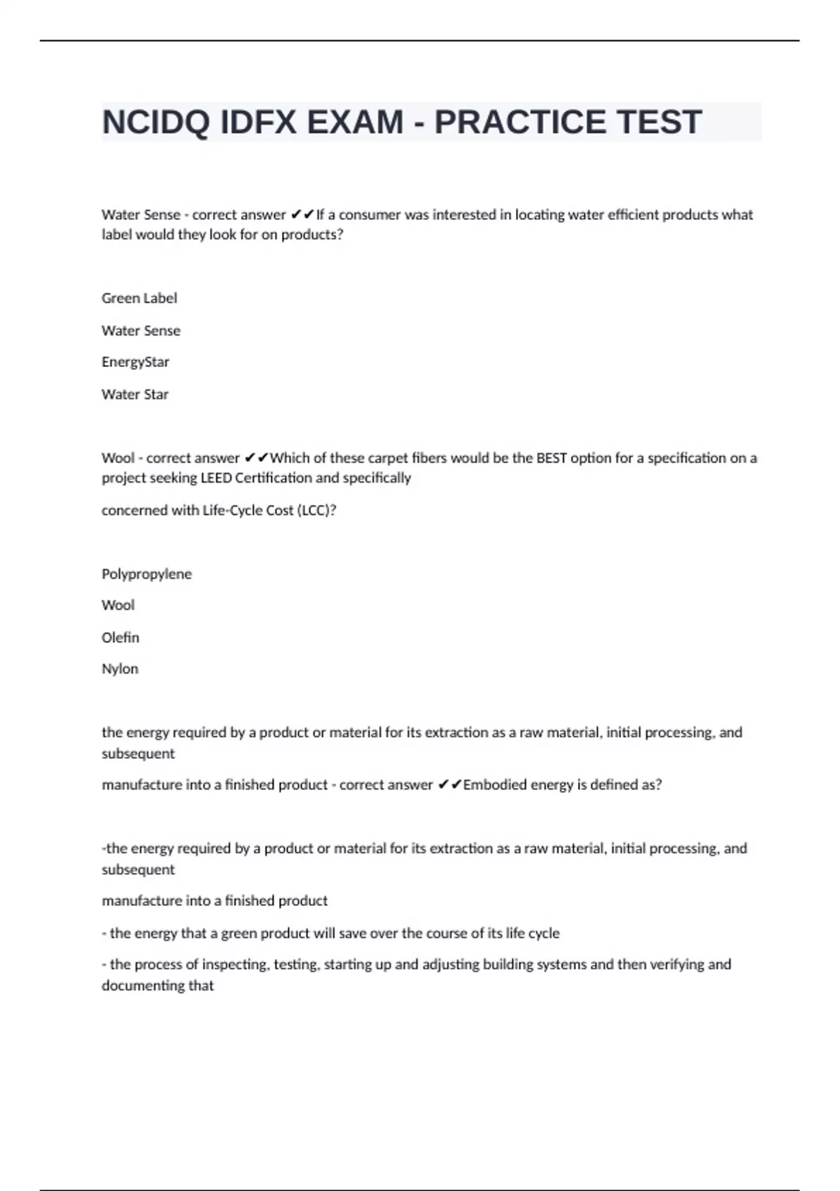 Wool - correct answer ✔✔Which of these carpet fibers would be the BEST option for a specification on a